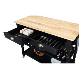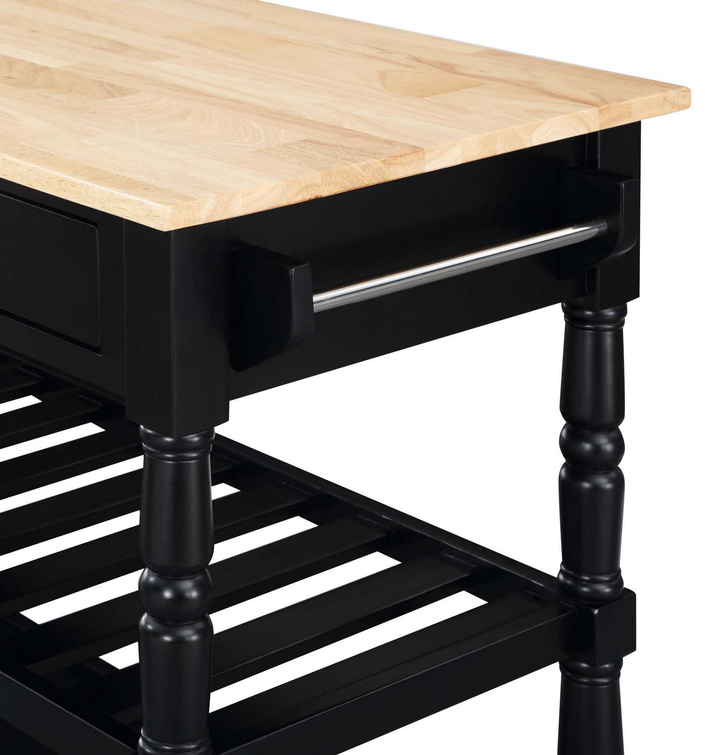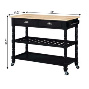Convenience Concepts French Country 3 Tier Butcher Block Kitchen Cart with Drawers, Butcher Block/Black