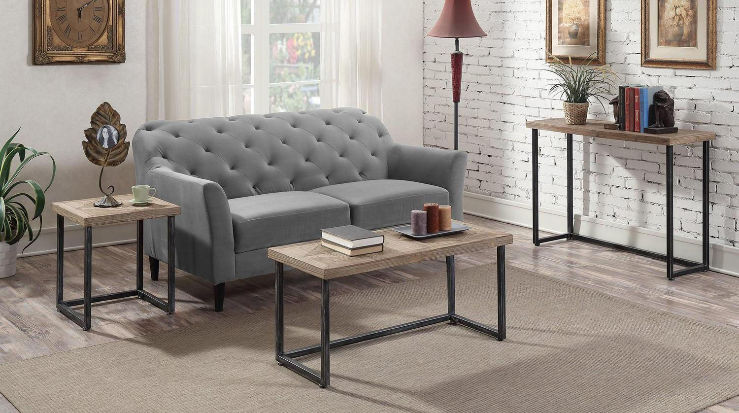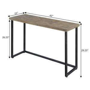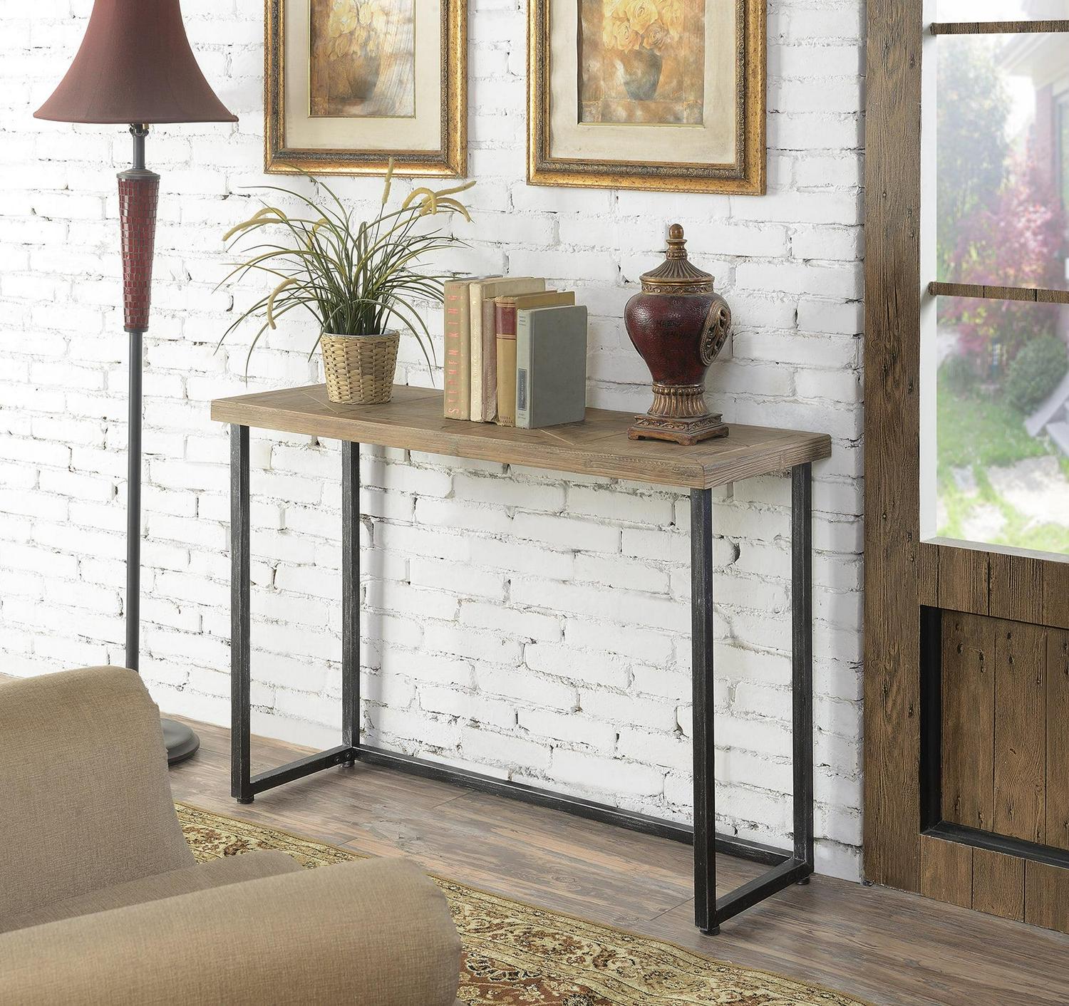 Bring a touch of Rustic Charm into your space with the Laredo Parquet Console Table. Featuring a reclaimed Parquet look with knotty pine and woodgrain patterns. The light complexion of the fir wood perfectly complements the dark finish of the brushed metal frame. The open airy frame will complete the look of any new or existing decor.