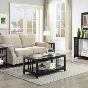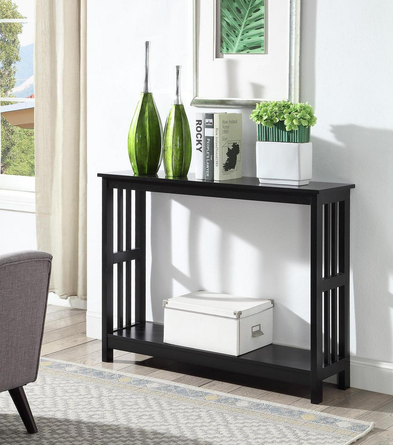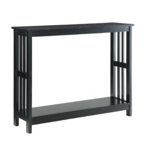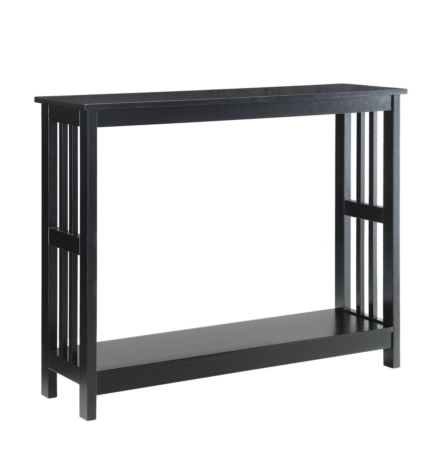 Mission Console Table, Black The Mission Console Table by Convenience Concepts is a great addition to any home. Available in multiple finishes it is sure to complement any decor. Featuring a bottom shelf that provides plenty of space to display collectibles or every day necessities with ease of access. Coordinating pieces are also available sold separately.