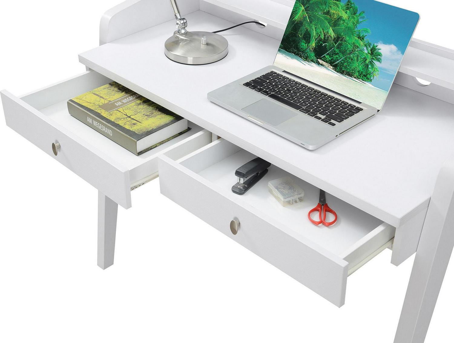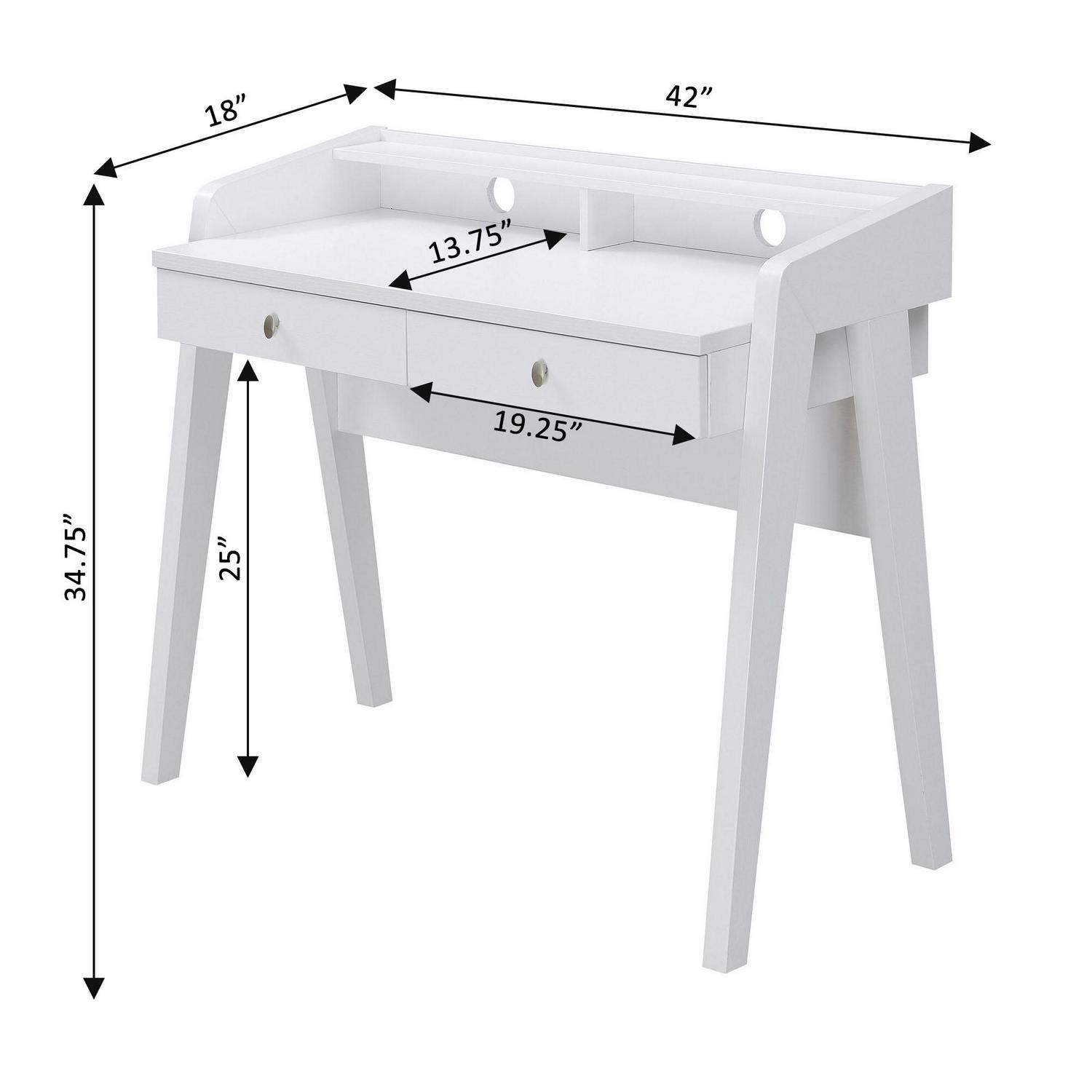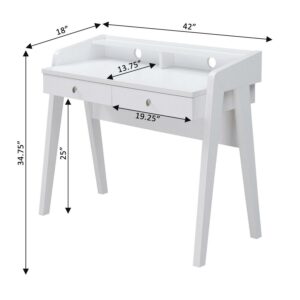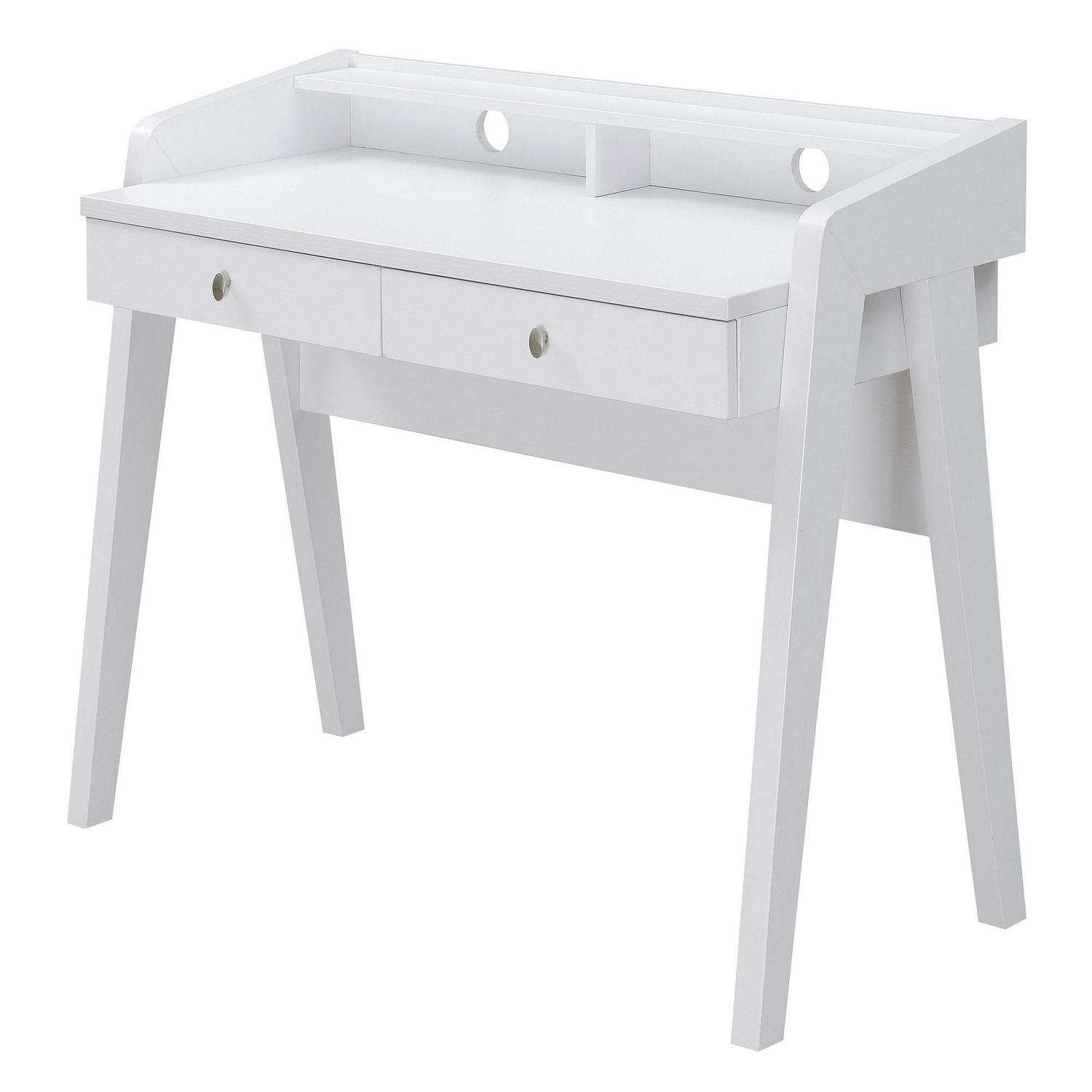Convenience Concepts Newport Deluxe 2 Drawer Desk with Shelf, White