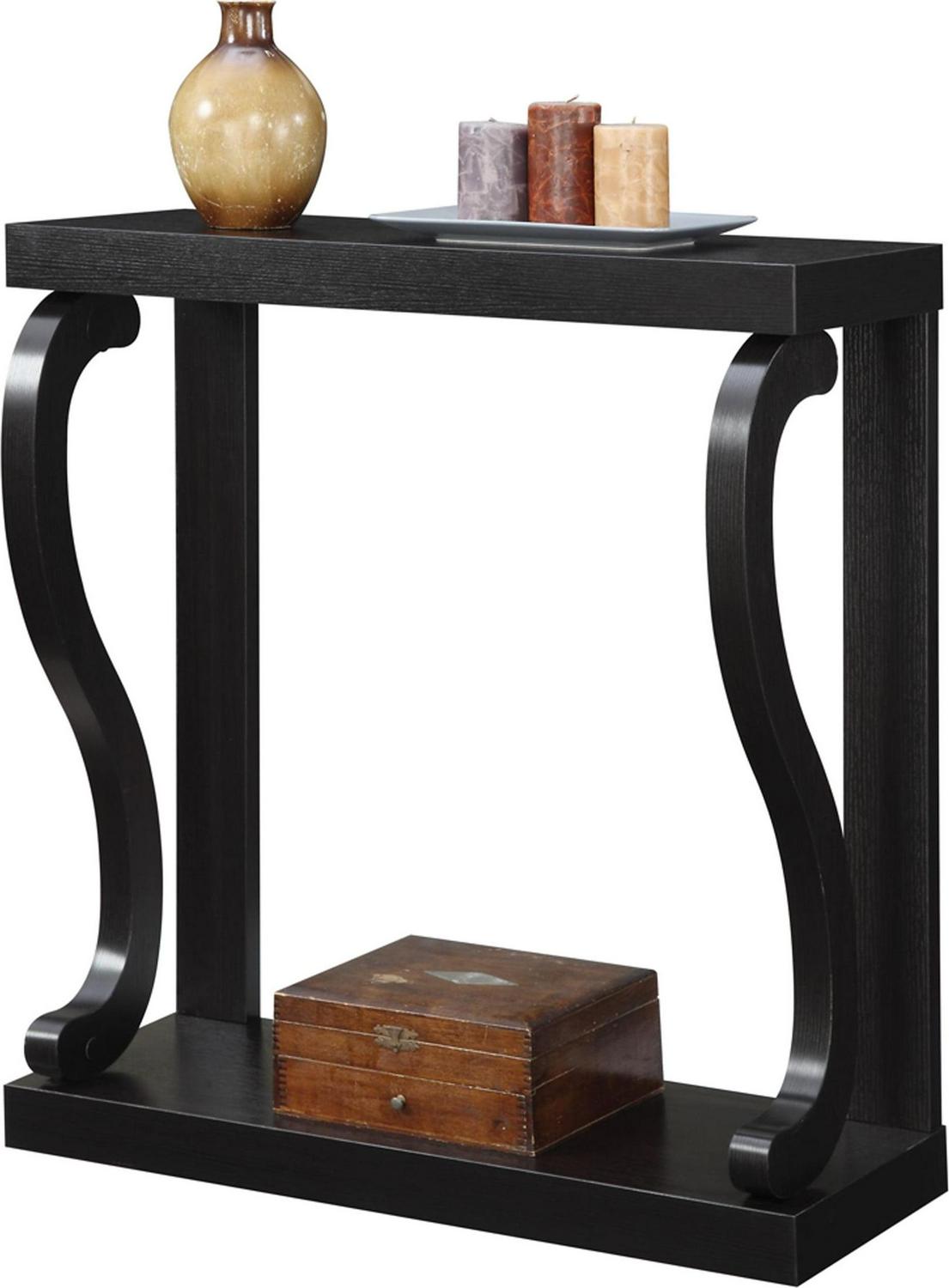Newport Gramercy Console Table, Espresso Available in multiple finishes the Newport Gramercy Console Table is sure to be an eye catcher. The sleek sophisticated design is great for any room where you can display collectibles or place your keys. The curved sides offer a dramatic look while showcasing the beautiful wood grain finish. Engineered for durability the Newport Gramercy Console Table will become a staple in your home.