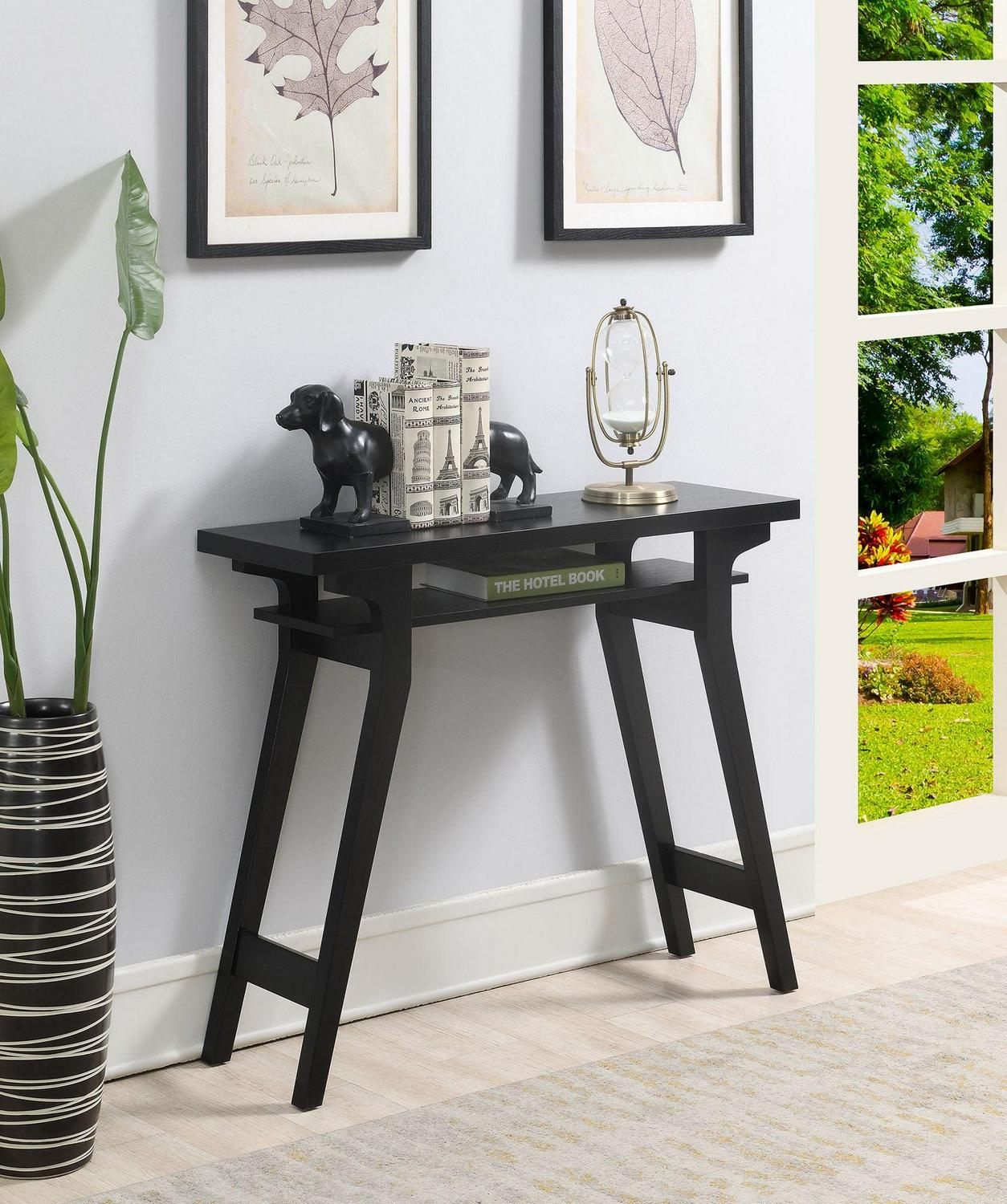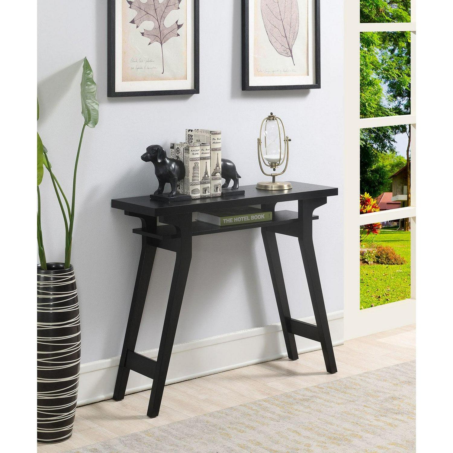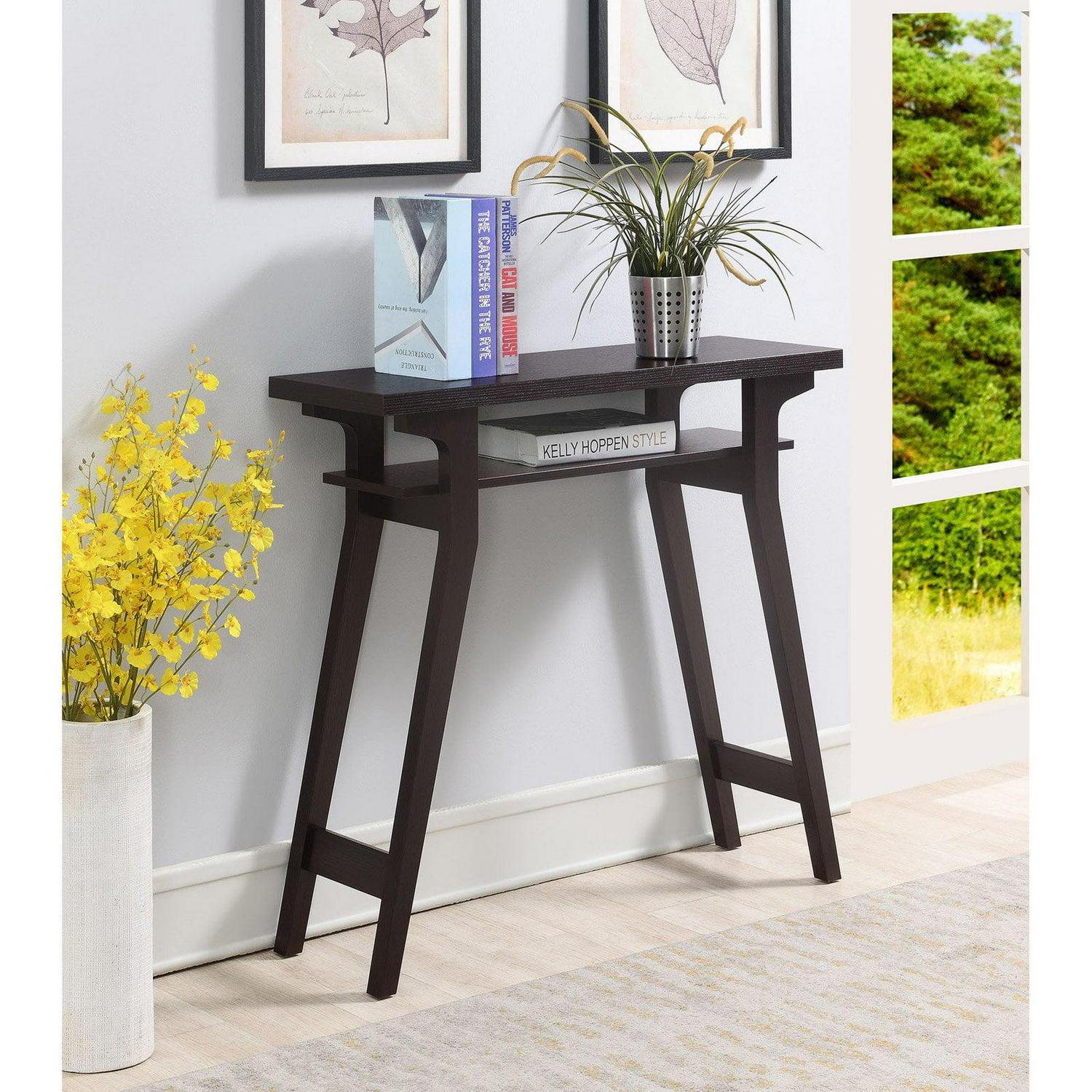 Ideal for small spaces; the Newport Lynda Console Table by Convenience Concepts will take up minimal square footage while optimizing your storage and display space. Showcases a contemporary style to upgrade your home decor. Place it in your entryway; hallway or home office and witness its limitless versatility. Provides ample tiers that are ideal to display your favorite collections or to keep your out the door essentials handy. You can even place a colorful tote basket right below the second shelf for additional storage space. This unique design was crafted from hollow core; MDF; particle board and paper melamine. Bring home today and transform your decor right after delivery. Its simple assembly is worth every step. This piece is available in multiple finishes to ensure you find the perfect fit. Love the look Pair it with a coffee table or end table from the Newport Collection by Convenience Concepts. Each sold separately.