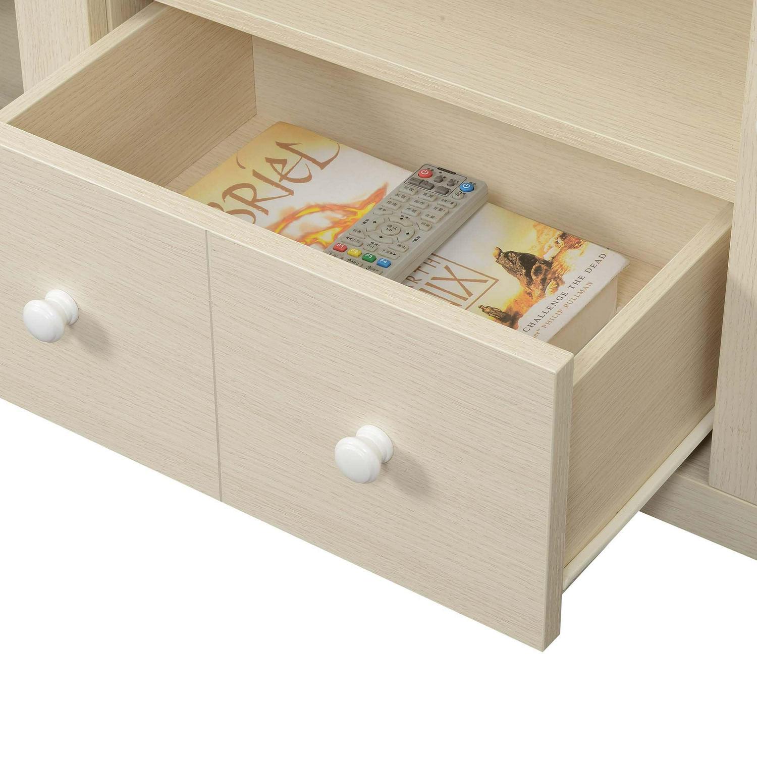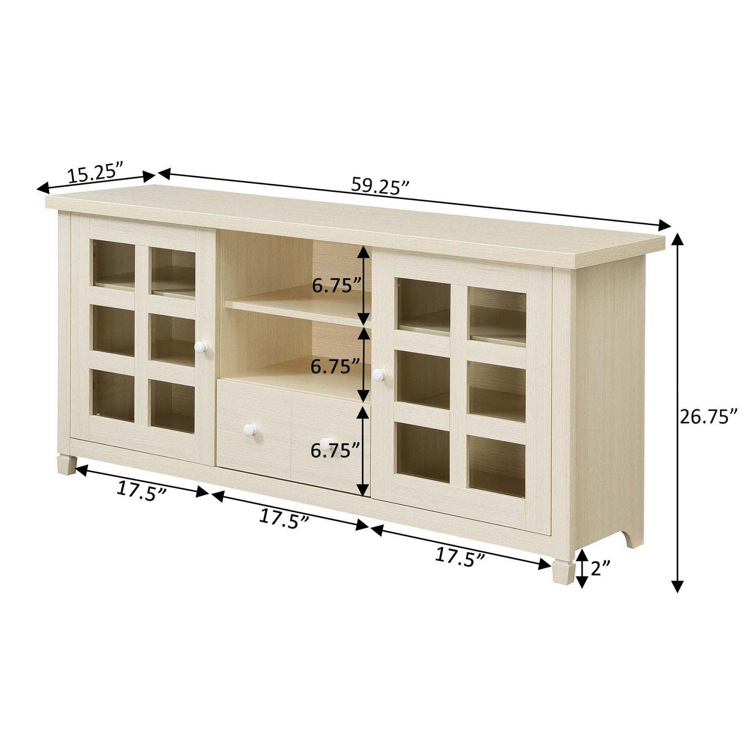 Convenience Concepts Newport Park Lane 1 Drawer TV Stand with Storage Cabinets and Shelves for TVs up to 65 Inches, Ivory