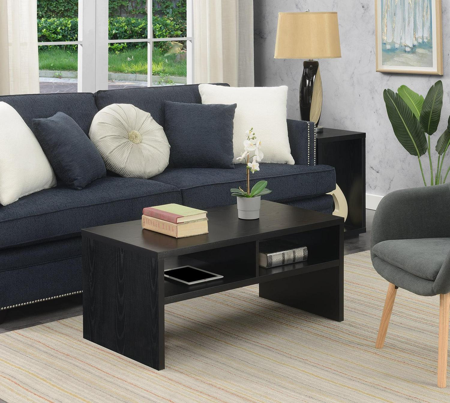 Convenience Concepts Northfield Admiral Deluxe Coffee Table with Shelves, Black