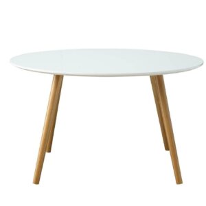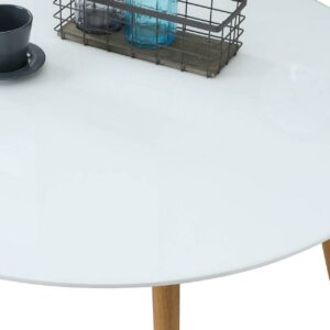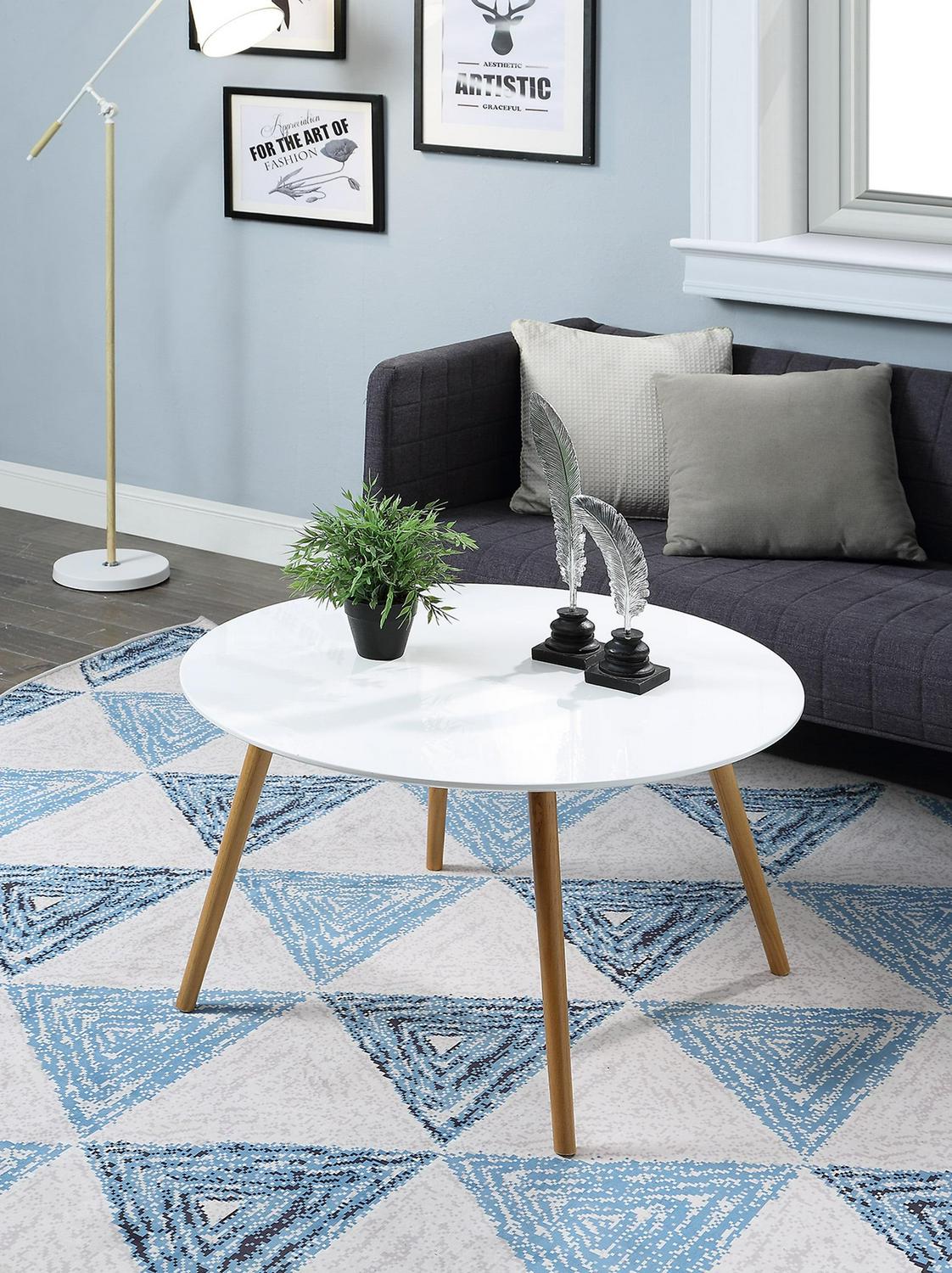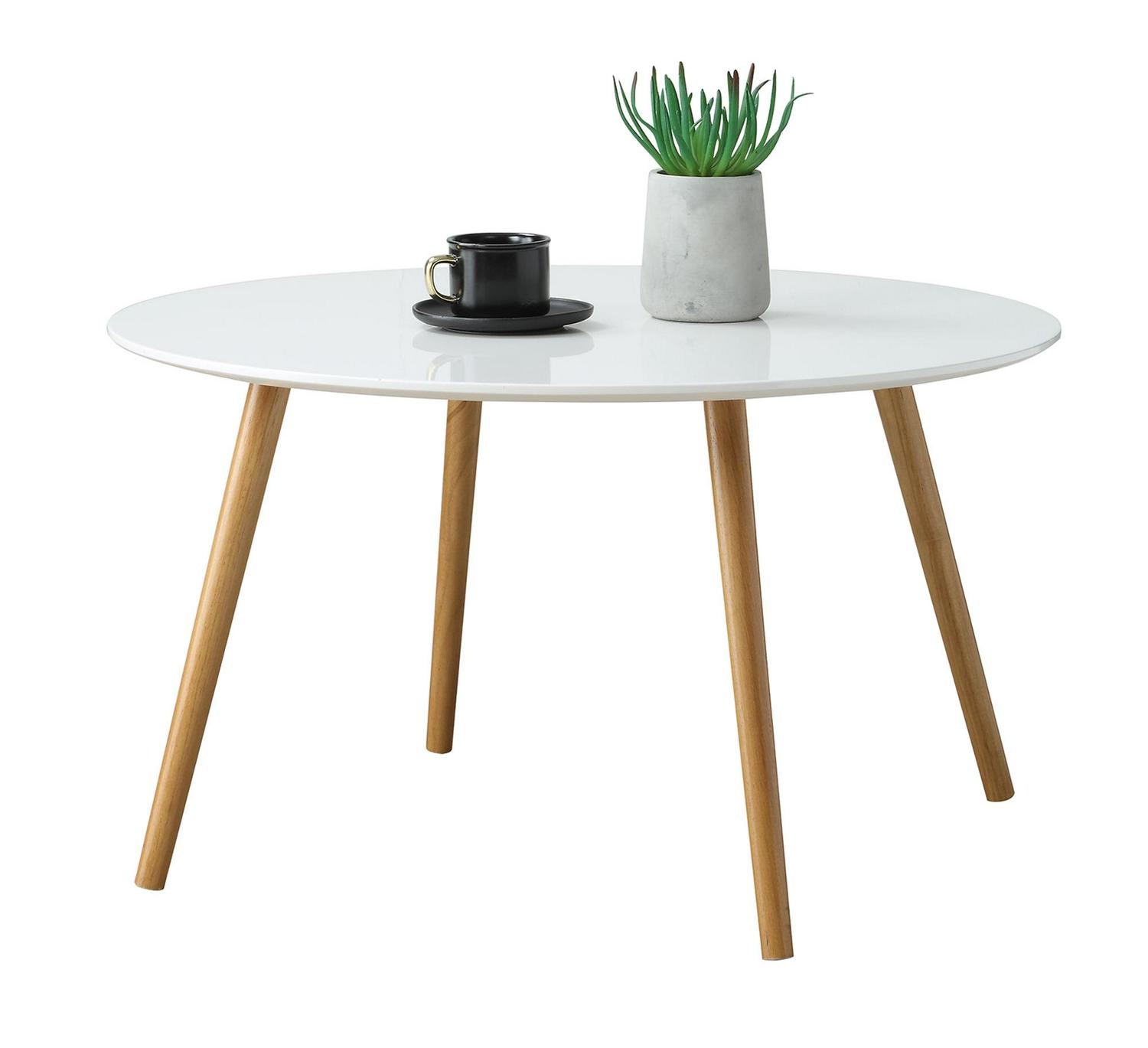 Featuring a minimalistic mid-century design, the Oslo Round Coffee Table from Convenience Concepts is the perfect addition to your modern home. Its simplistic Scandinavian style and two-toned finish will create an airy feel to any living space while optimizing display space. The large round tabletop is made of MDF and finished with a high piano gloss. With its sturdy solid rubberwood legs, this 15-pound coffee table is built for longevity and easy maintenance. Enjoy in no time with its easy 2-step assembly. Complete the modern home look you have been searching for with more pieces from the Oslo Collection, each sold separately.