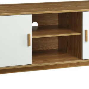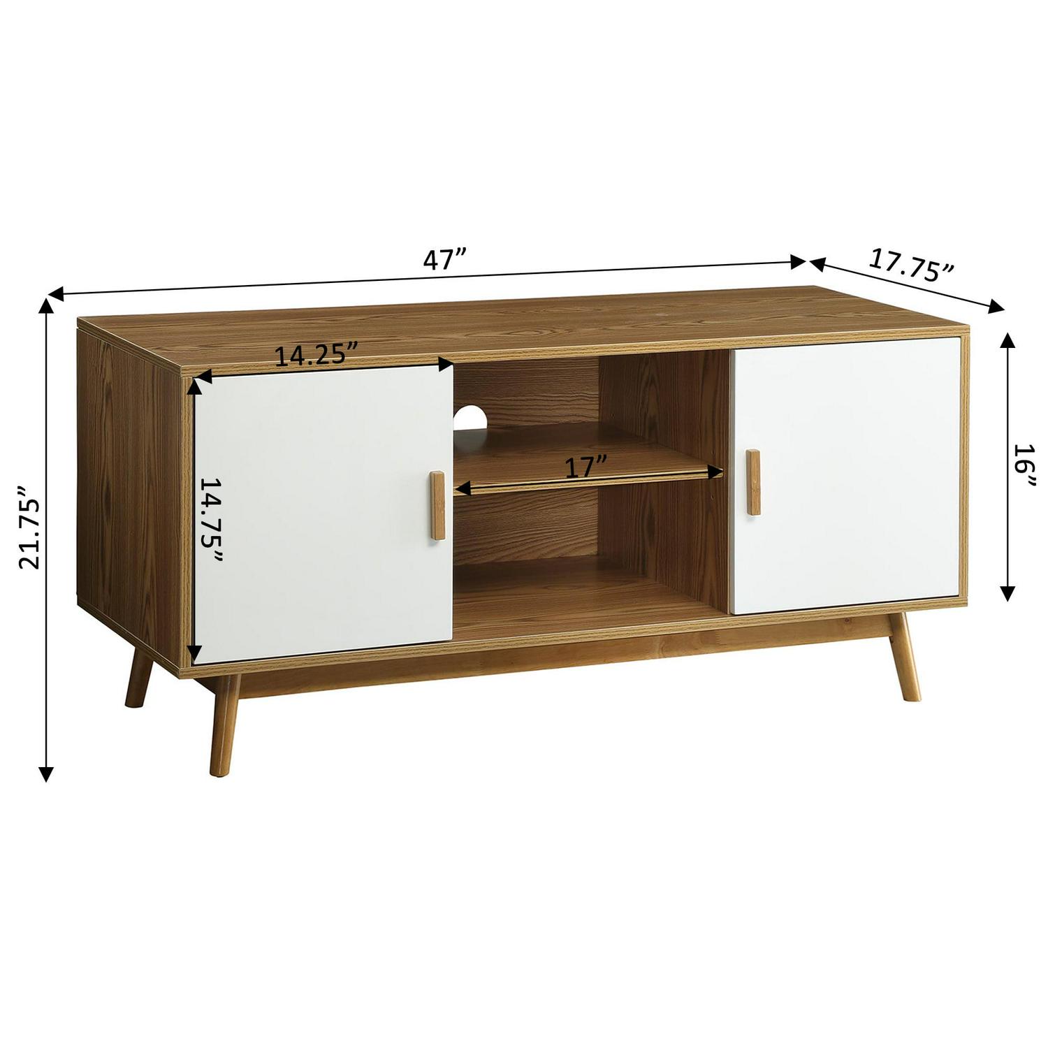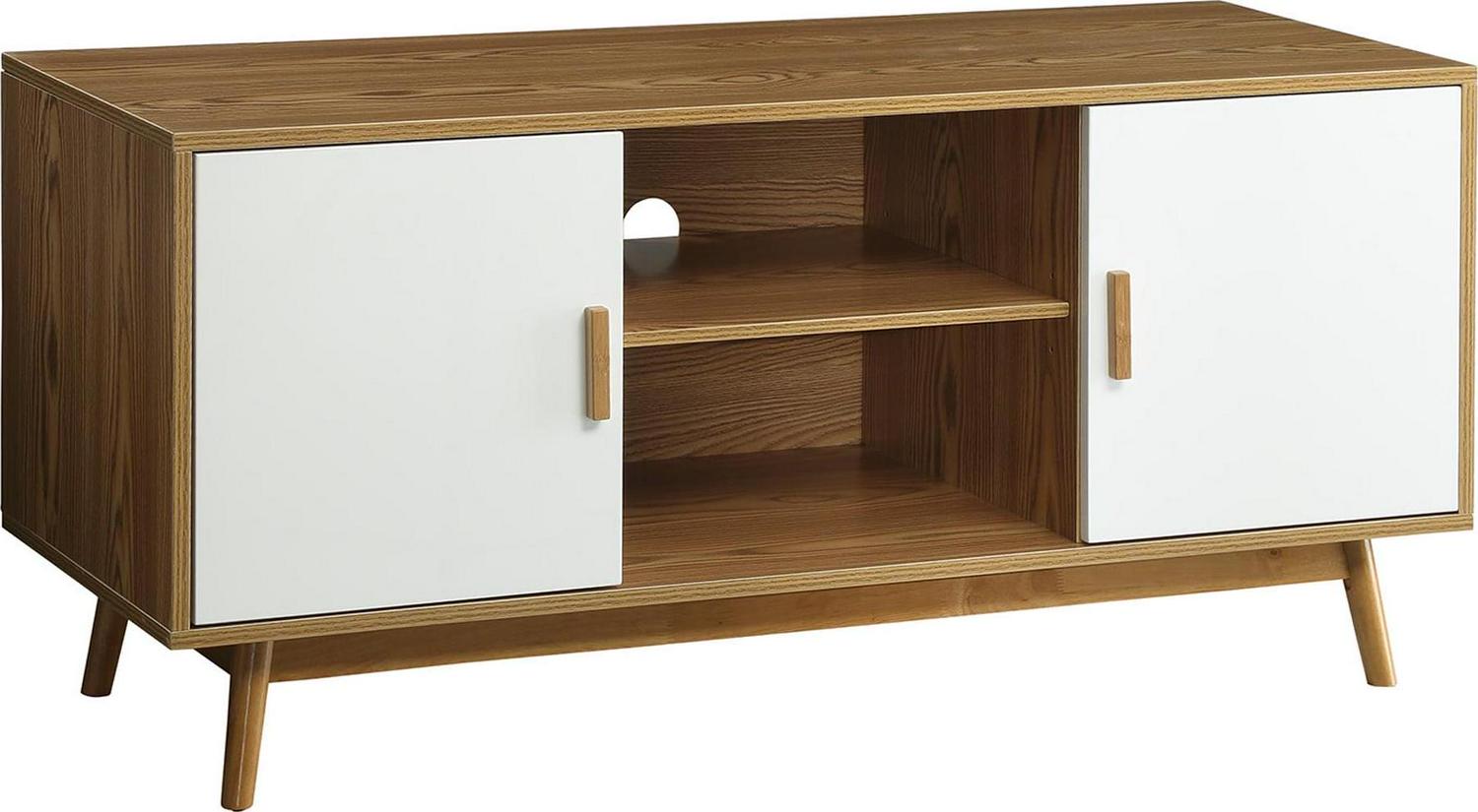 Convenience Concepts Oslo TV Stand with Storage Cabinets and Shelves, Woodgrain/White