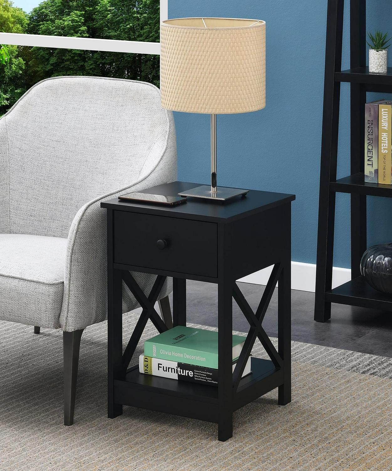 Convenience Concepts Oxford 1 Drawer End Table with Shelf, Black
