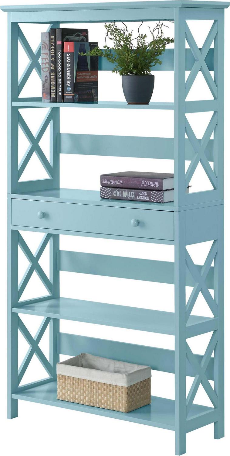 Convenience Concepts Oxford 4 Tier Standard Bookcase with 1 Drawer, Sea Foam Blue
