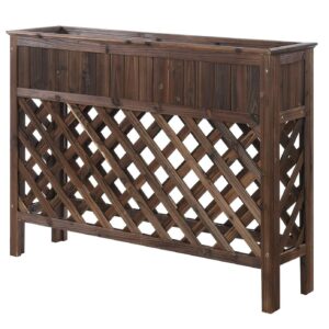 The Planters & Potts Large Raised Patio Planter will bring new life to your outdoor space. This planter is at a comfortable height to be able to stand up and plant without having to kneel on the ground. Also perfectly sized to use as a divider between garden and patio. This weatherproof piece offers a bottom lattice design with generous space for your plants and herbs. Available in multiple finishes and sizes.