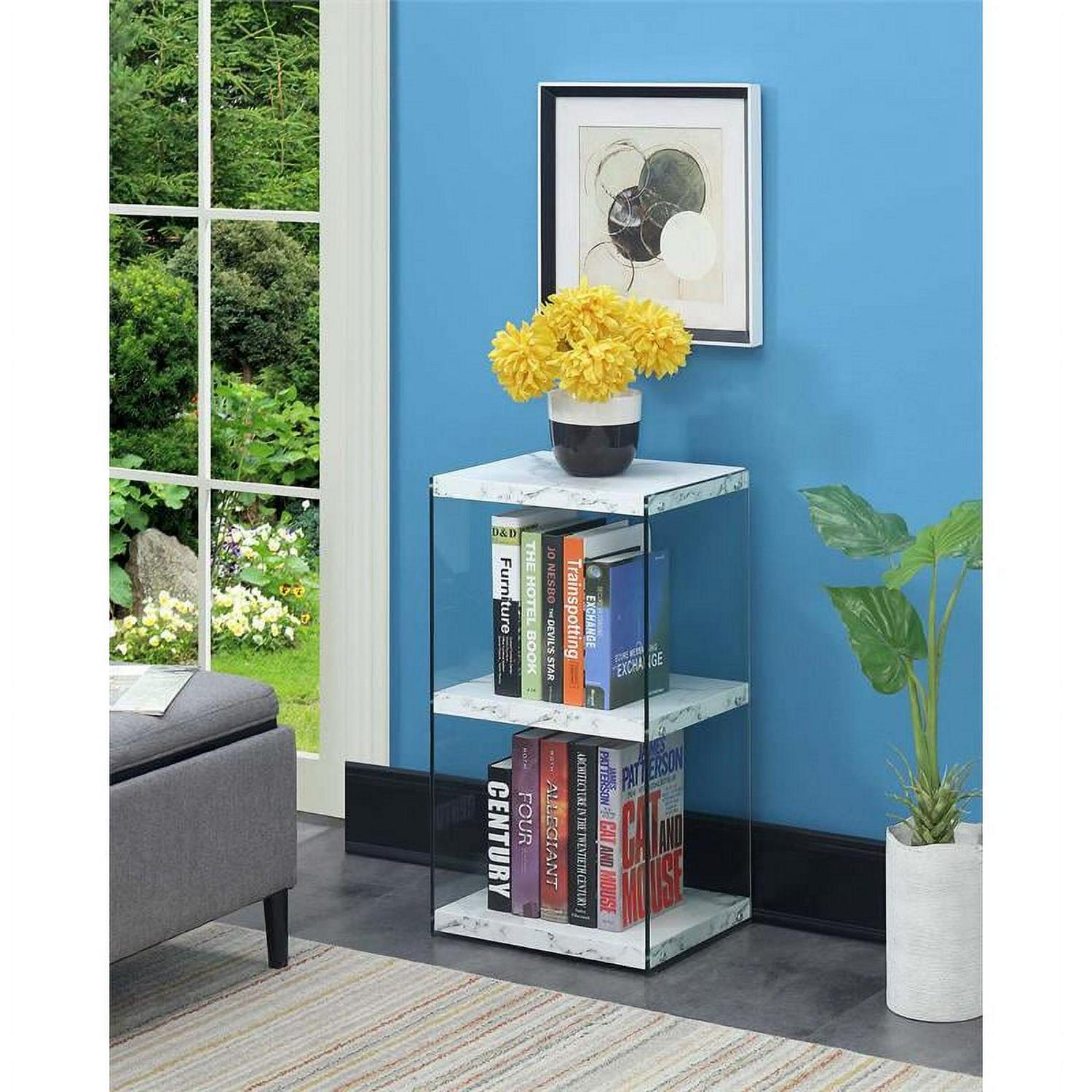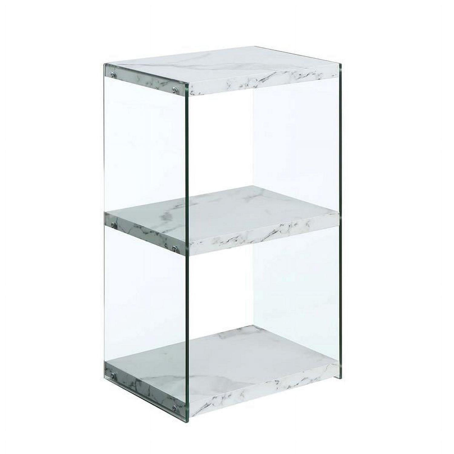 SoHo 3 Tier Tower Bookcase Introduce a sparkling addition to your ensemble with the SoHo 3 Tier Tower Bookcase by Convenience Concepts. Its tempered clear glass side panels create the magical illusion that the shelves are floating, giving your favorite books a unique display space. This bookshelf displays a modern contemporary style that is sure to refresh your home decor. With a limitless versatility, this multifunctional storage unit is ideal for your living room, entryway or home study. The shelves are crafted from honeycomb particle board and finished in a rich melamine paper, making it long lasting and easy maintenance. Display your books right after delivery with its simple 1 step assembly. Enjoy its three shelves, perfect for your storage or display needs. Available in multiple finishes. Pair with additional furniture pieces from the SoHo Collection by Convenience Concepts. Each sold separately.