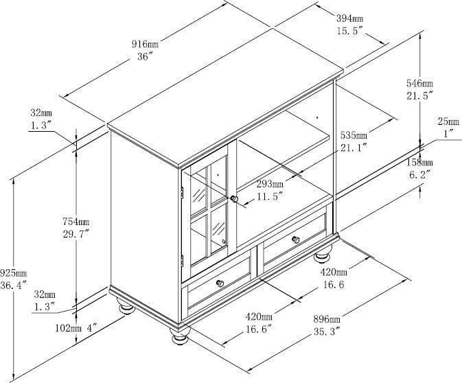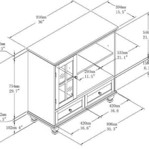 – Assembled Item Dimensions: 36 in. W x 15.5 in. D x 36.5 in. H