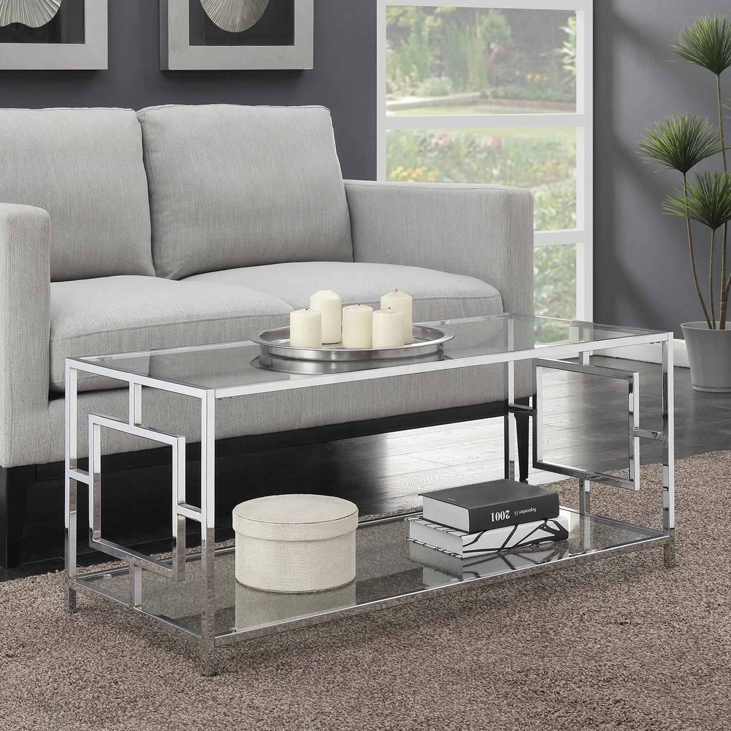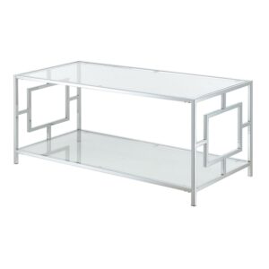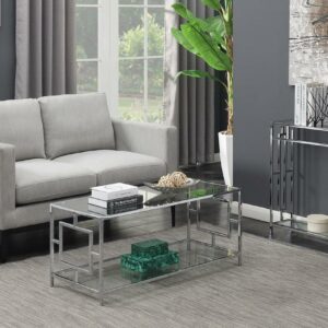 Convenience Concepts Town Square Chrome Coffee Table with Shelf, Glass/Chrome