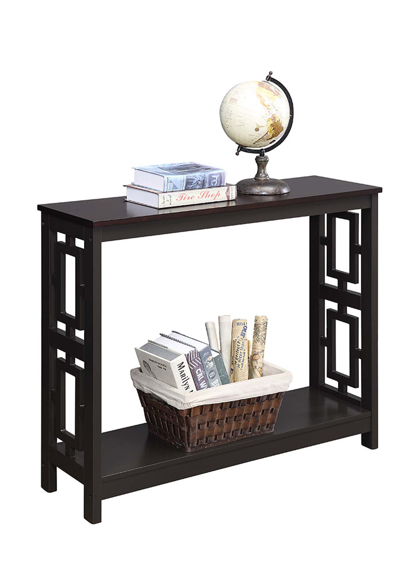Bring home the eye-catching Town Square Console Table with Shelf by Convenience Concepts. This simple yet stylish console table showcases an Asian-inspired design with its unique square side panels. An additional bottom shelf provides plenty of decorative space or can be used as storage space if needed. This carefully crafted unit is constructed from MDF and finished with non-lead-based paint for safe, long-term use. Coordinate this console table with additional pieces from the Town Square Collection by Convenience Concepts, each sold separately.