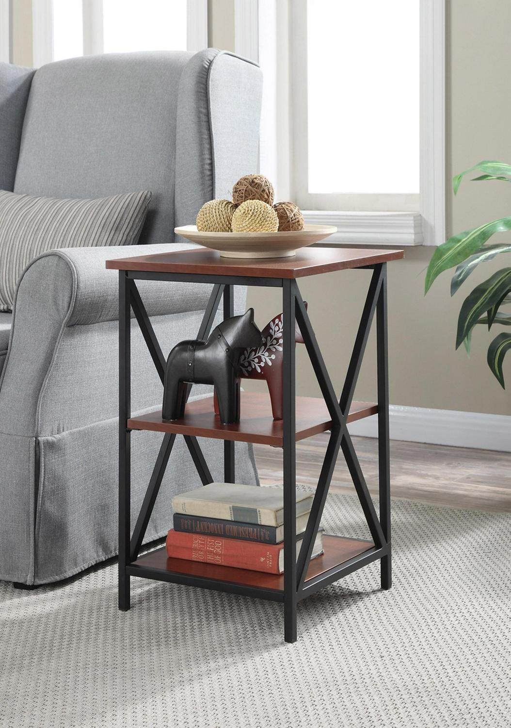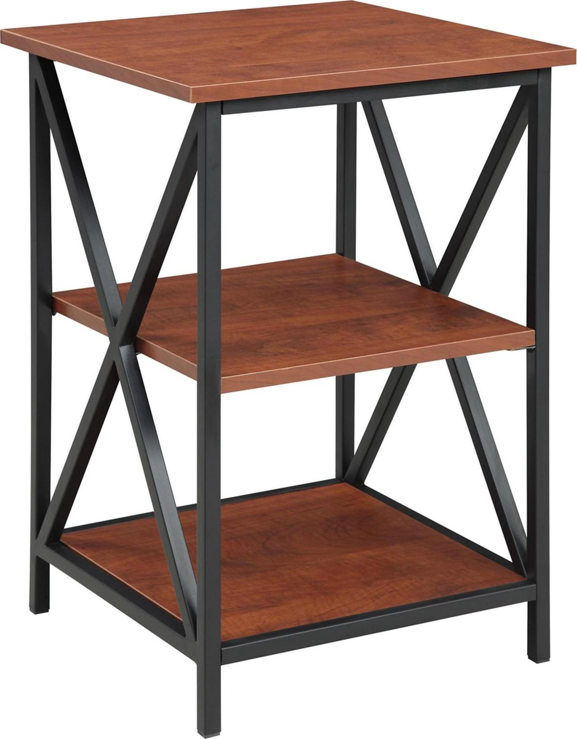 Give your space a stylish upgrade with the Tucson 3 Tier End Table by Convenience Concepts. This charming accent table blends a classic look with a contemporary design. Boasting clean lines paired with X side framework constructed from powder coated metal. Featuring three tiers of open shelving which provide plenty of space for decor or accessible storage. Place this table on either side of the sofa for a comfortable seating dynamic or between two chairs for a pleasant conversation nook. Look for other items from the Tucson Collection by Convenience Concepts, each sold separately.