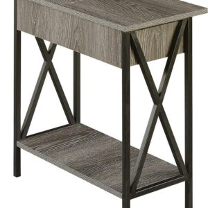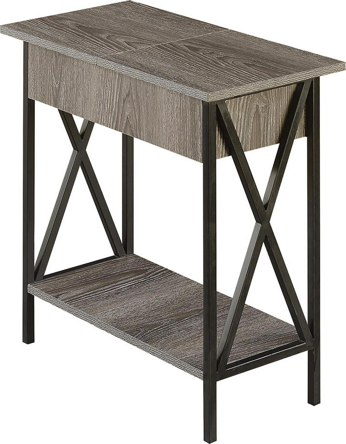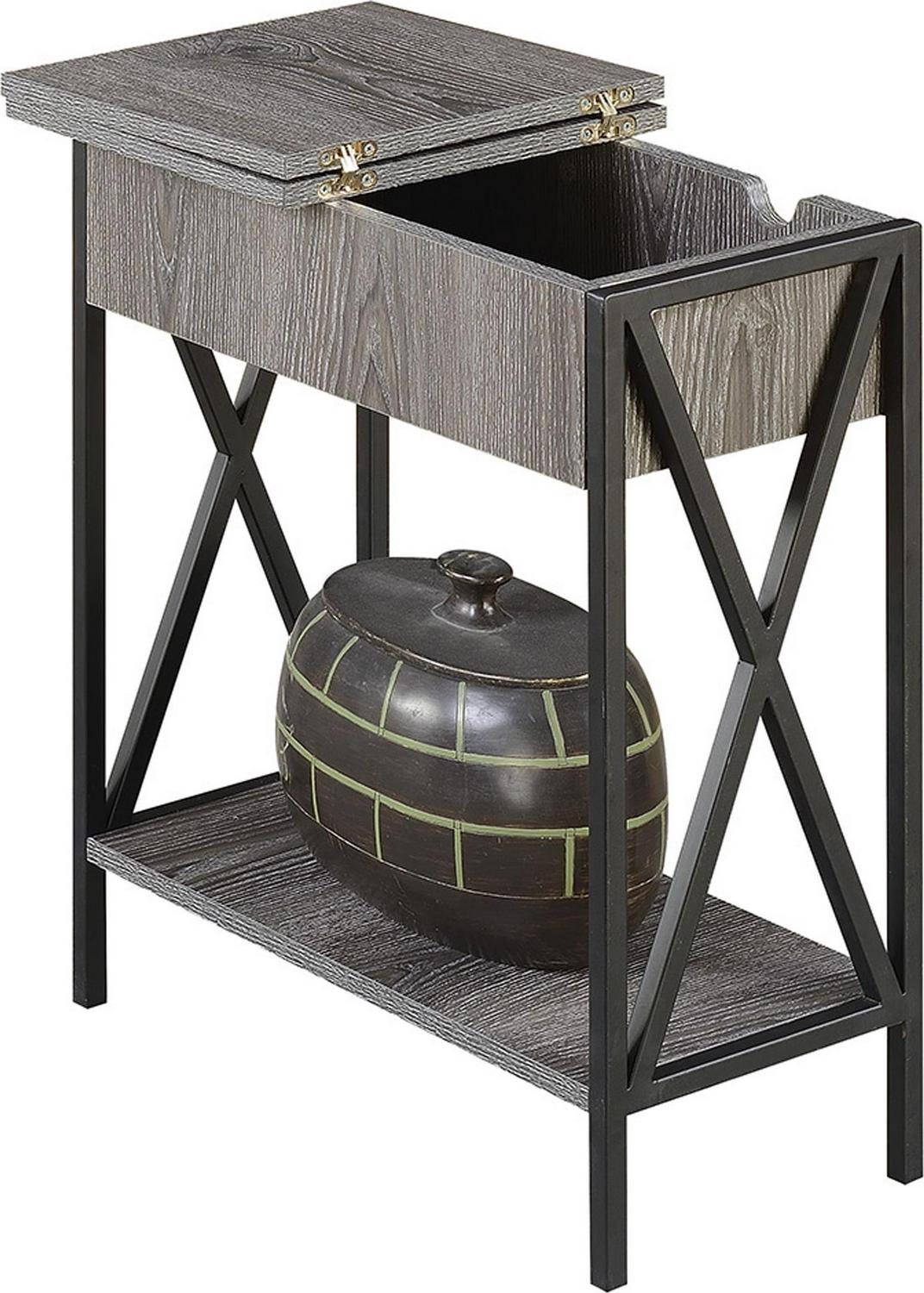 Convenience Concepts Tucson Flip Top End Table with Charging Station and Shelf, Weathered Gray/Black