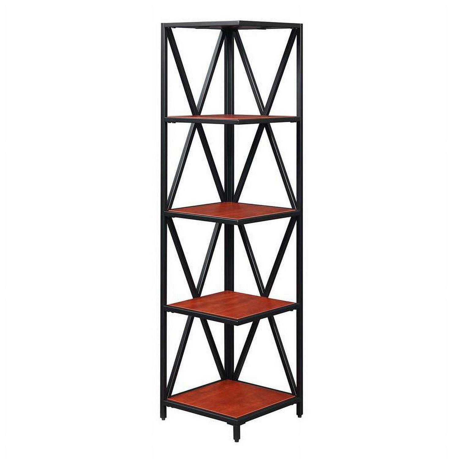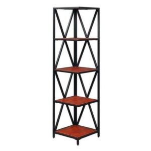 Convenience Concepts Tucson Metal 5 Tier Corner Bookcase, Cherry/Black