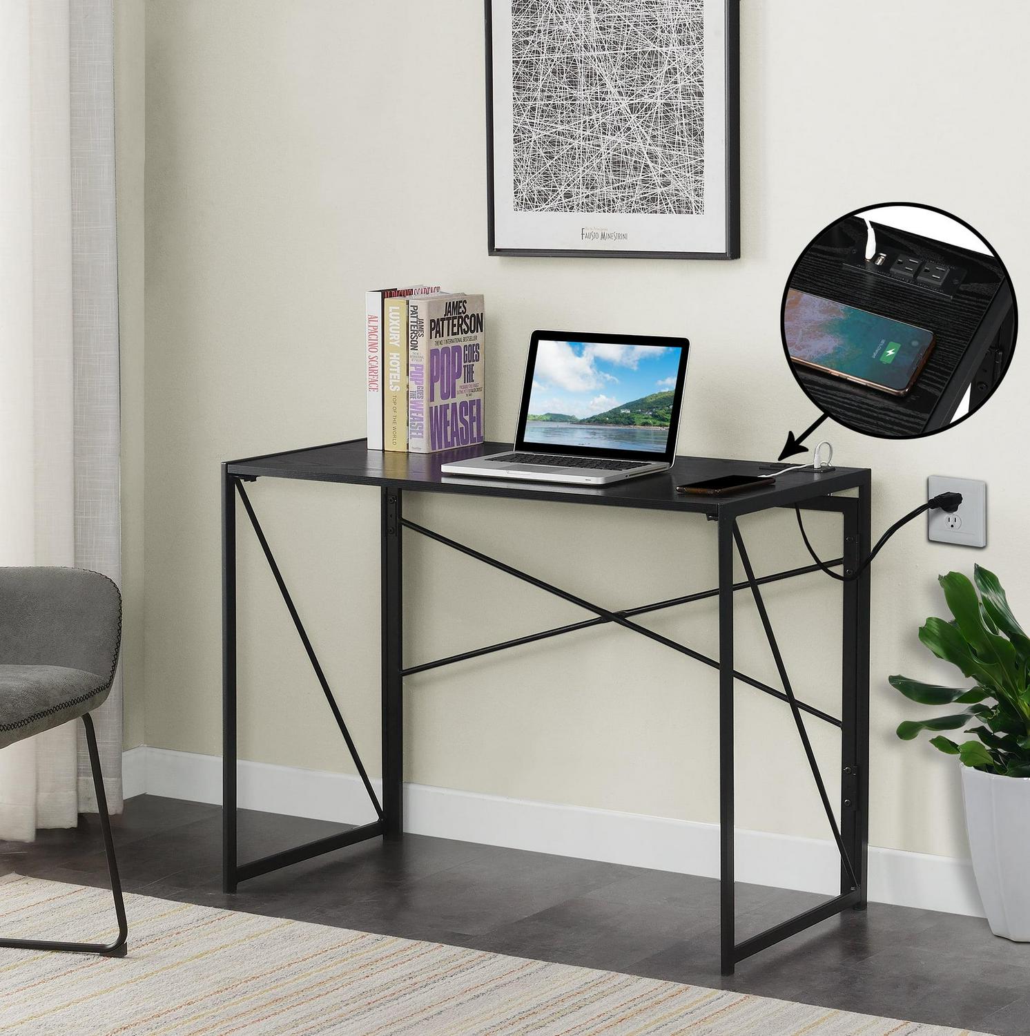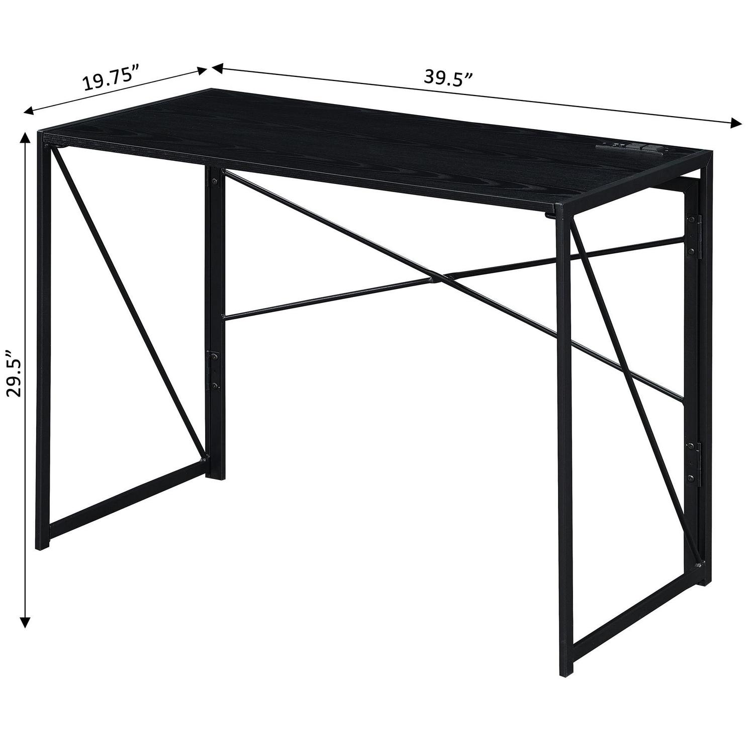 Convenience Concepts Xtra Folding Desk with Charging Station, Black