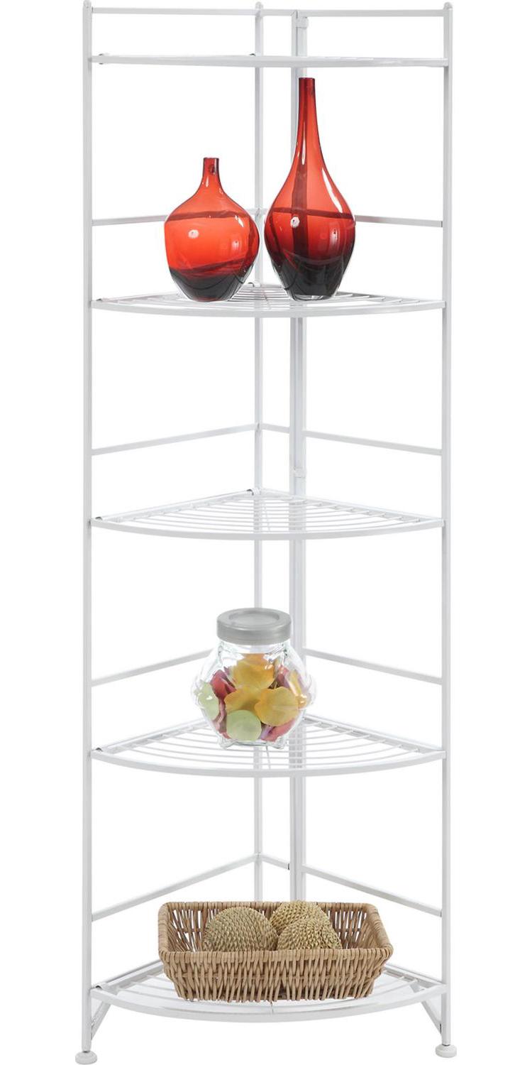 Convenience Concepts Xtra Storage 5 Tier Folding Metal Corner Shelf, White
