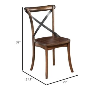 Convenient Metal Accented Side Chairs In Rubberwood Set Of 2 Brown- Saltoro Sherpi Let your guests enjoy your classy choice in the form of this magnificently crafted Side Chairs (Set Of 2)made ofRubberwood Solids andamp; Oak Veneer. The sleak wooden legs and frame with a crossed design amidst the back rest with padded seating arrangement with lovely brown cushion seats not only makes this a useful piece adding to your seating experience but is a super comfortable option too.
