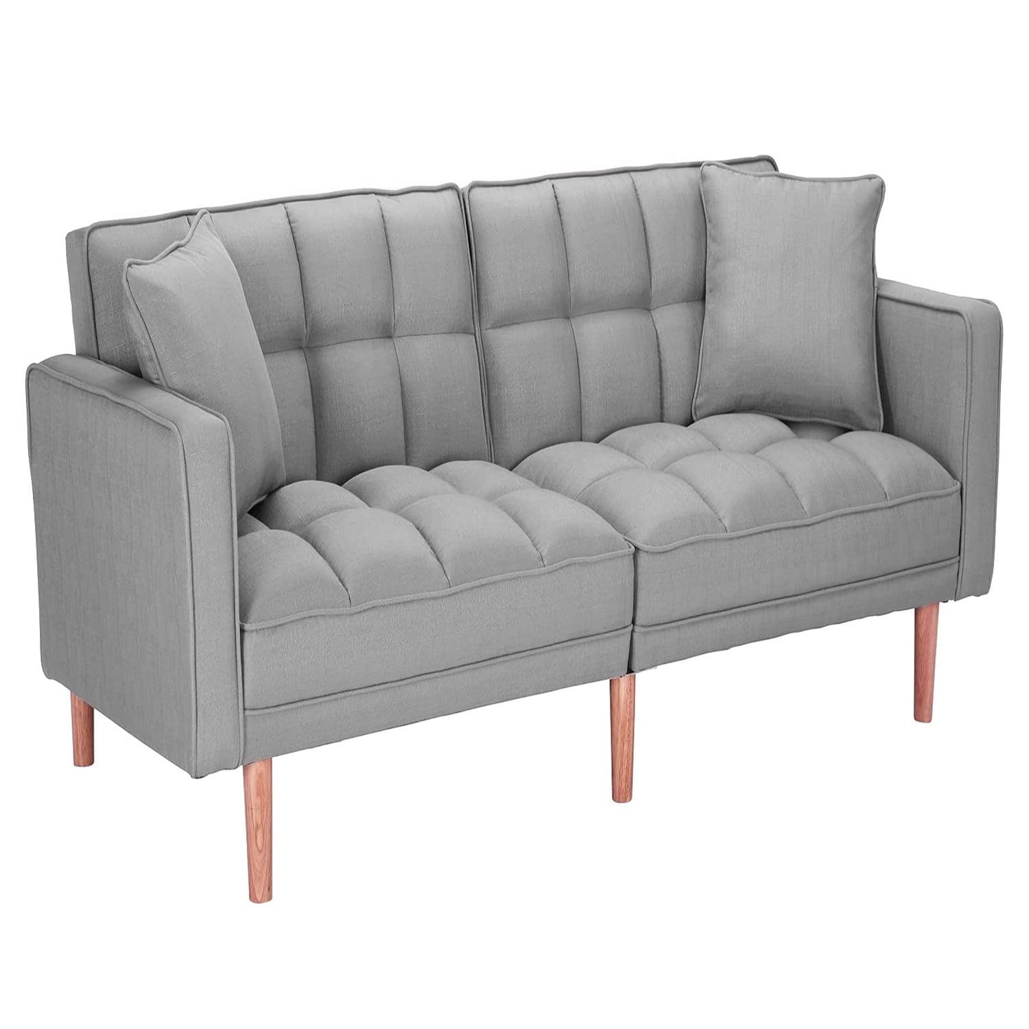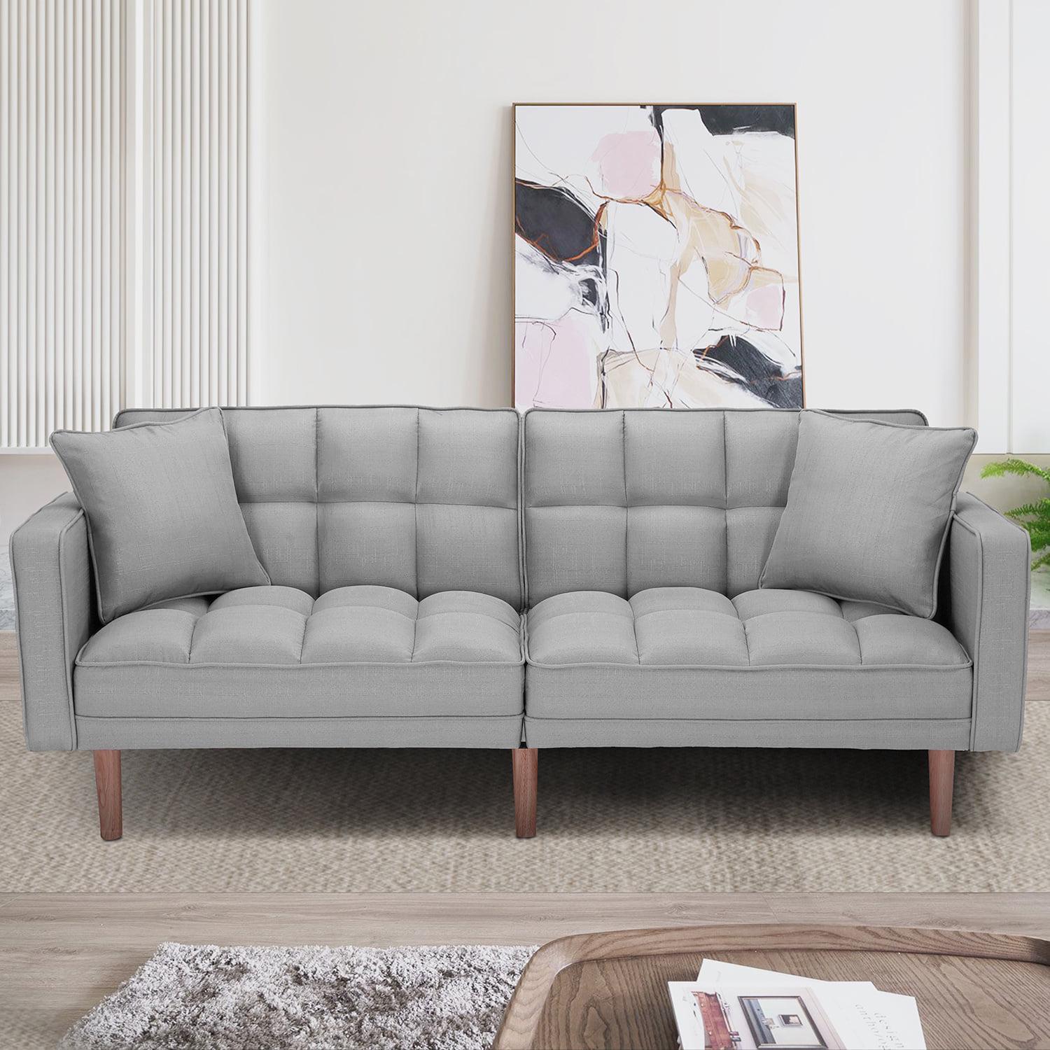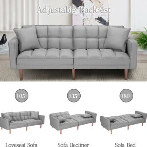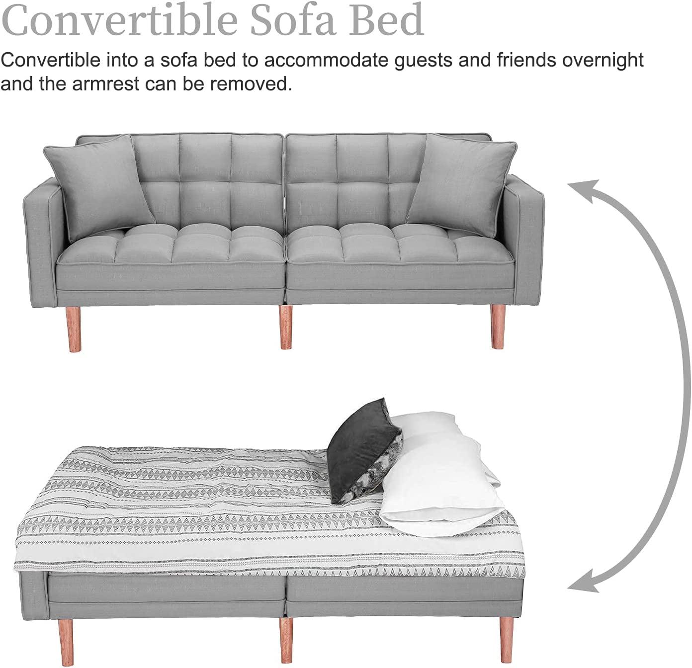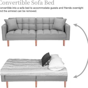 Convertible Futon Sofa Bed with 2 Pillows, Fabric Convertible Single Bed for Compact Living Space, Apartment, Dorm – Light Gray