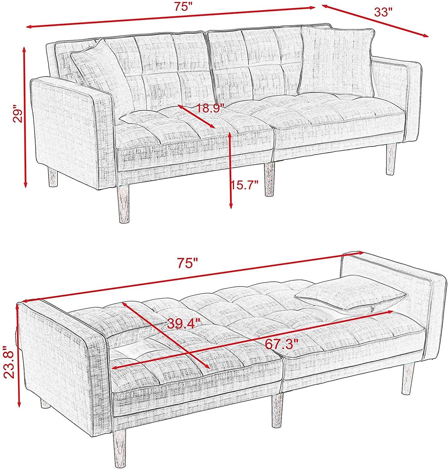 – Ideal for Small Spaces – A versatile solution for small spaces in apartments, studios and homes. When used as a sofa, the size is 76 x 34.25 x 30 inches high; when used as a bed, the size is 76 x 40 x 23.8 inches high.
