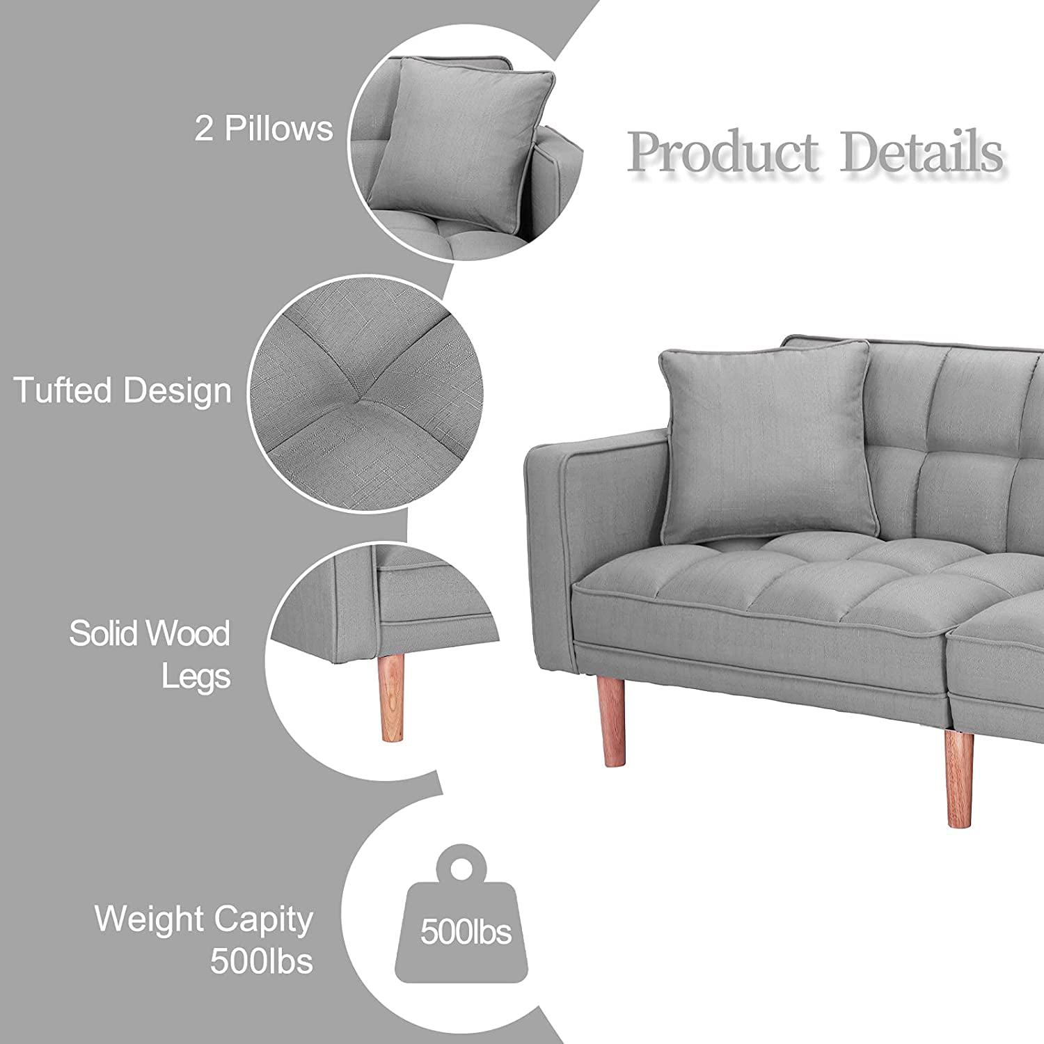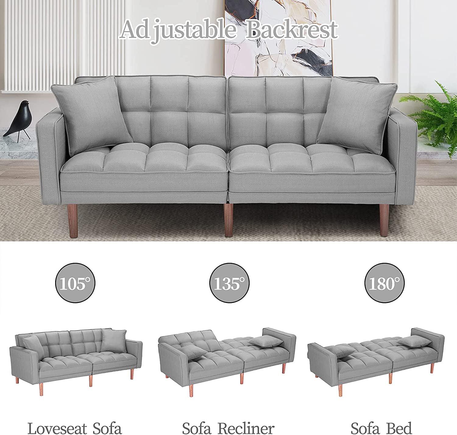 – Adjustable Backrest – Charming upholstery with plush padding and 2 accompanying pillows. The back of the sofa can be tilted at three levels to meet different daily needs. It can provide overnight guests from a sitting position to a reclining sleeping place, flexible and convenient.