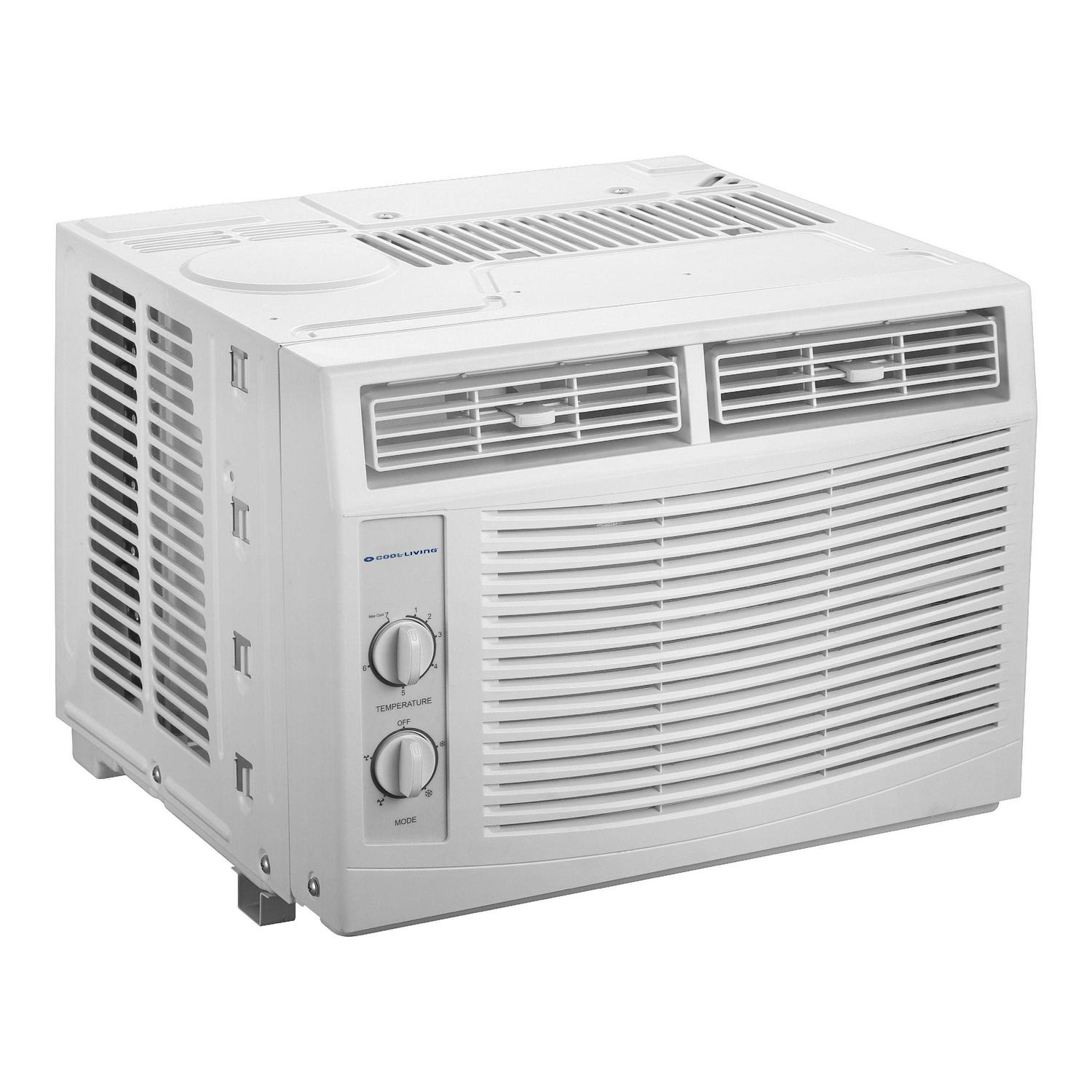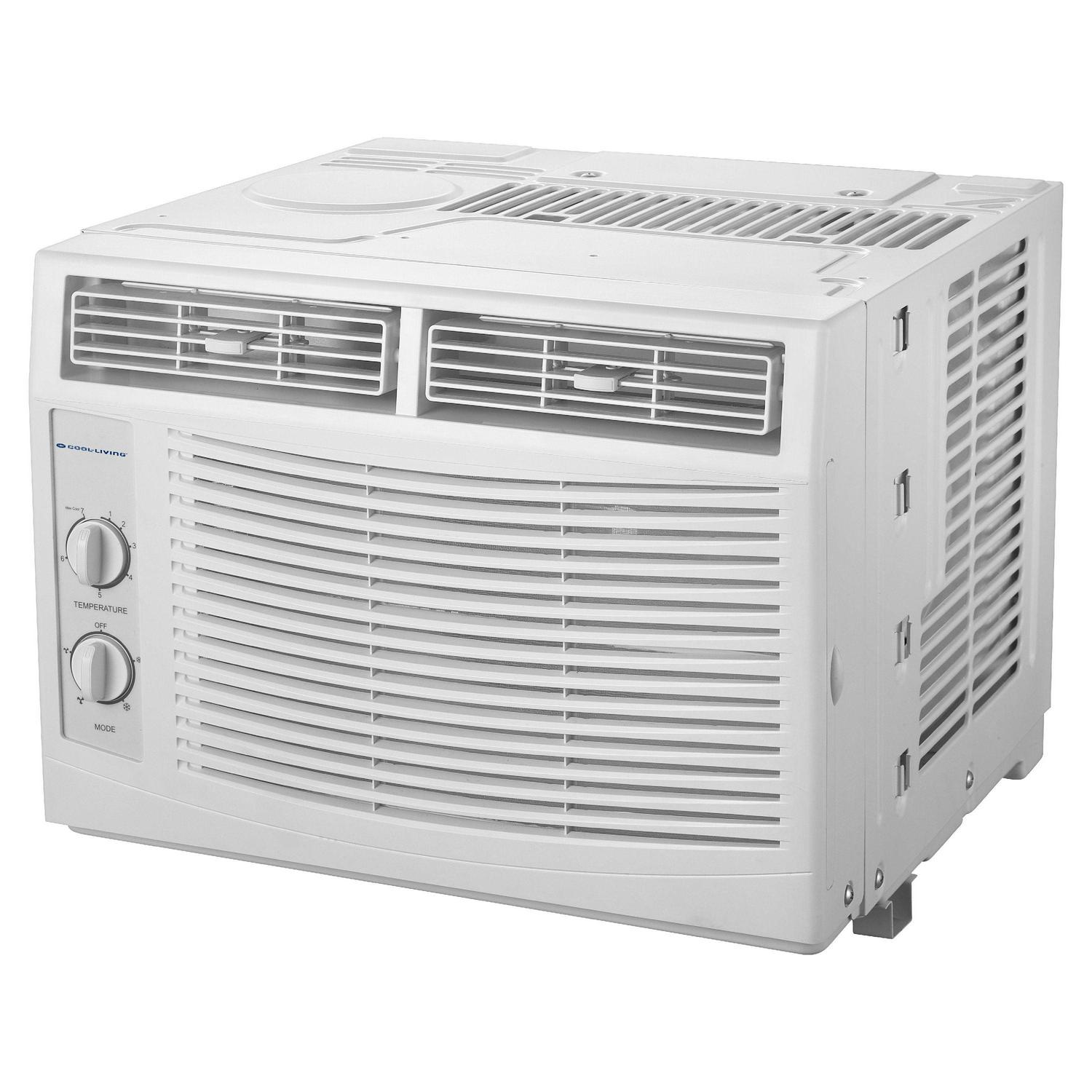 Feel more comfortable on the hot days ahead with the Cool-Living 5,000-BTU Window Air Conditioner. This unit is small, compact and lightweight, so it is easy to move from room to room but powerful enough to get the effect you need. This window-mount air conditioner comes with a kit that makes it easy to install, so cooling happens quickly. Rated at 5,000 BTUs, this unit can cool off rooms up to 150 sq ft, which makes it ideal for an office, bedroom or dorm room. The 115V window air conditioner features simple manual controls, side slide-out filter access for easy cleaning and replacement and a multi-directional vent. The 115V with window kit item also has eco-friendly R410A refrigerant to stay green. It is designed for installation in standard double-hung windows with varying sizes. Beat the summer heat with the Cool-Living 5,000-BTU Window Air Conditioner. Cool-Living 5,000-BTU Window Air Conditioner, 115V with Window Kit: