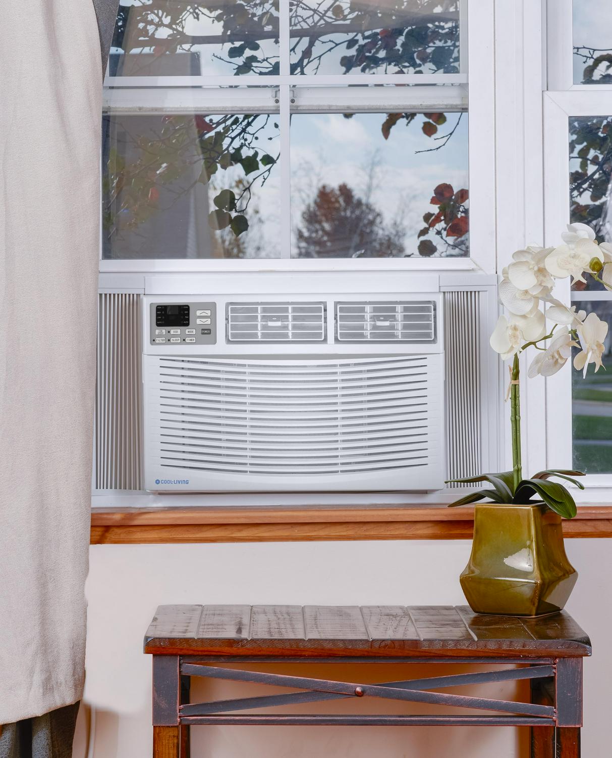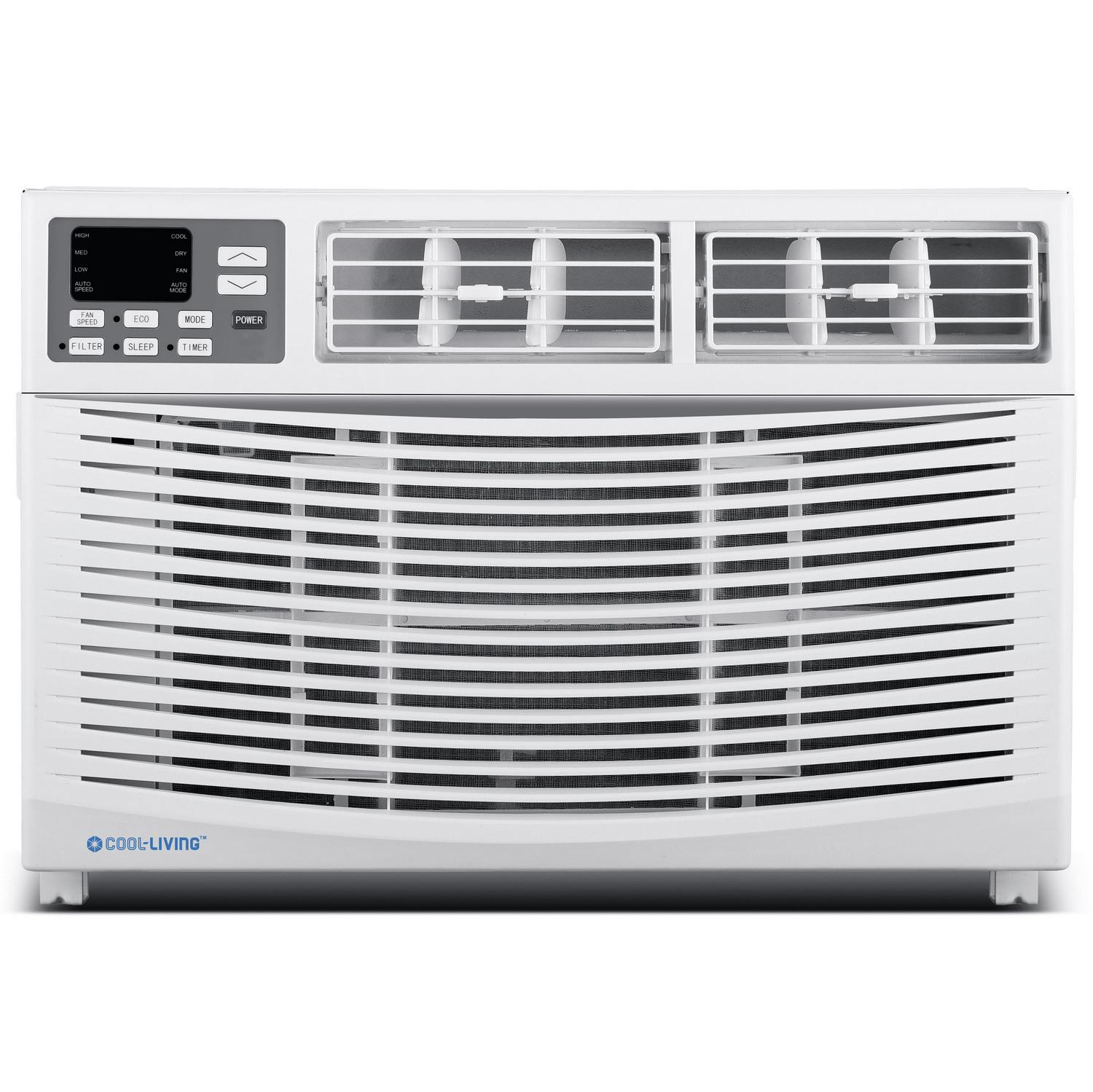 Keep cool with this powerful high-efficiency 8,000-BTU Room Window Air Conditioner by Cool-Living. Energy Star rated, it features a digital thermostat, remote control, programmable 24-hour timer, and multiple cooling and fan modes. A window installation kit is included for vertical-opening windows. Products that are Energy Star-qualified prevent greenhouse gas emissions by meeting strict energy efficiency guidelines set by the U.S. Environmental Protection Agency and the U.S. Department of Energy. The ENERGY STAR name and marks are registered marks owned by the U.S. government, as part of their energy efficiency and environmental activities.