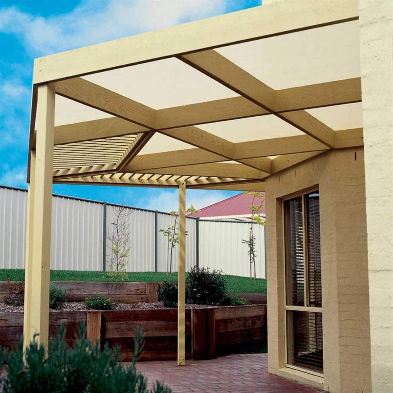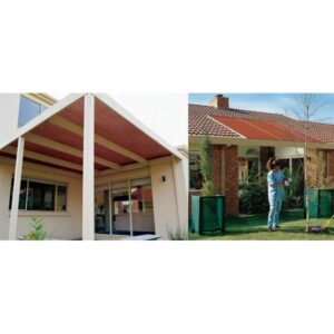 Coolaroo shade cloth is the perfect outdoor fabric. Designed to ‘breathe’, it allows cooling breezes to flow through, significantly reducing temperatures beneath by up to 32-percent. This state of the art material blocks up to 70-percent of the suns harmful rays yet remains totally unaffected by moisture and natural temperature extremes and because Coolaroo fabric is knitted, not woven, it won’t tear or fray and the special Coolaroo process ensures colors remain vivid for years.