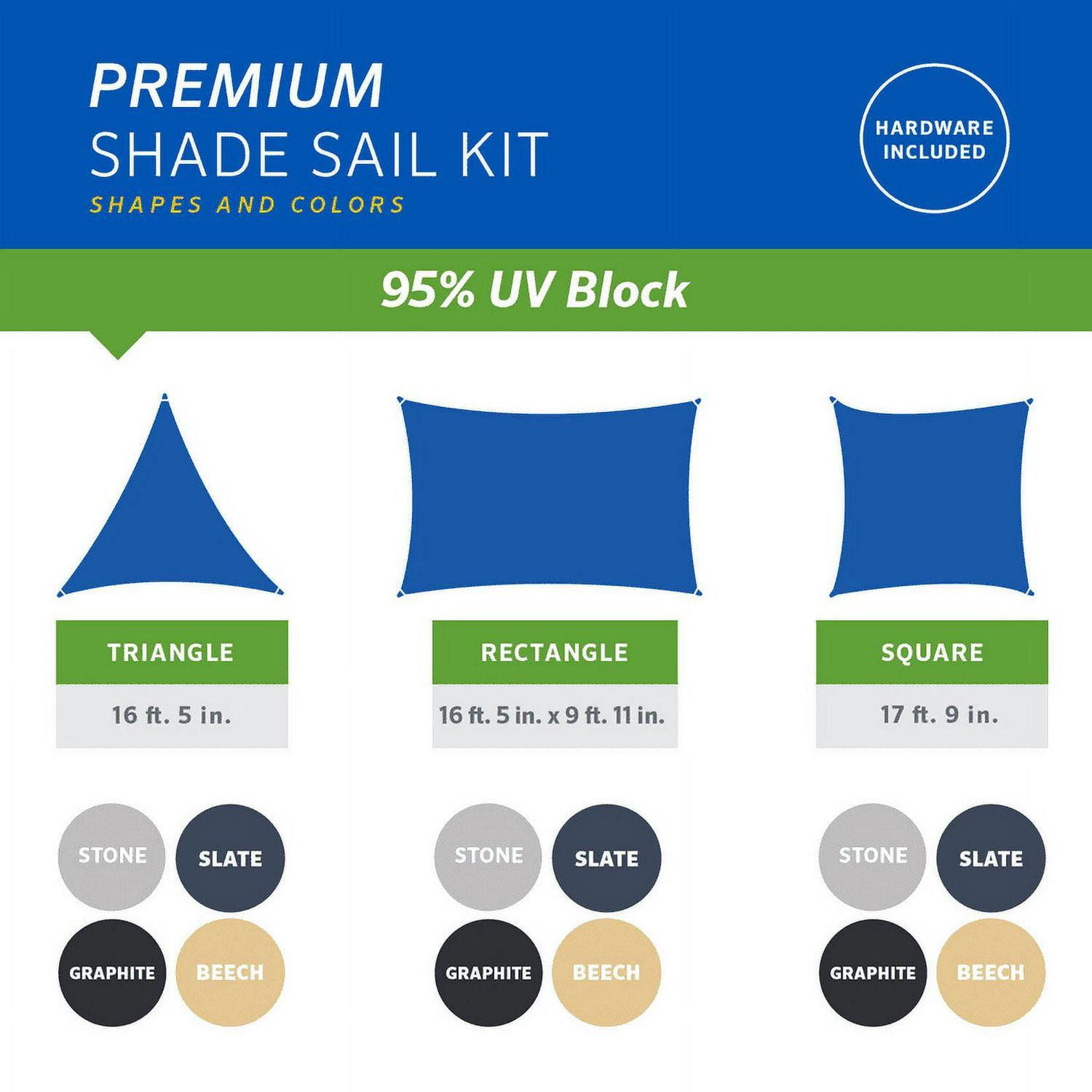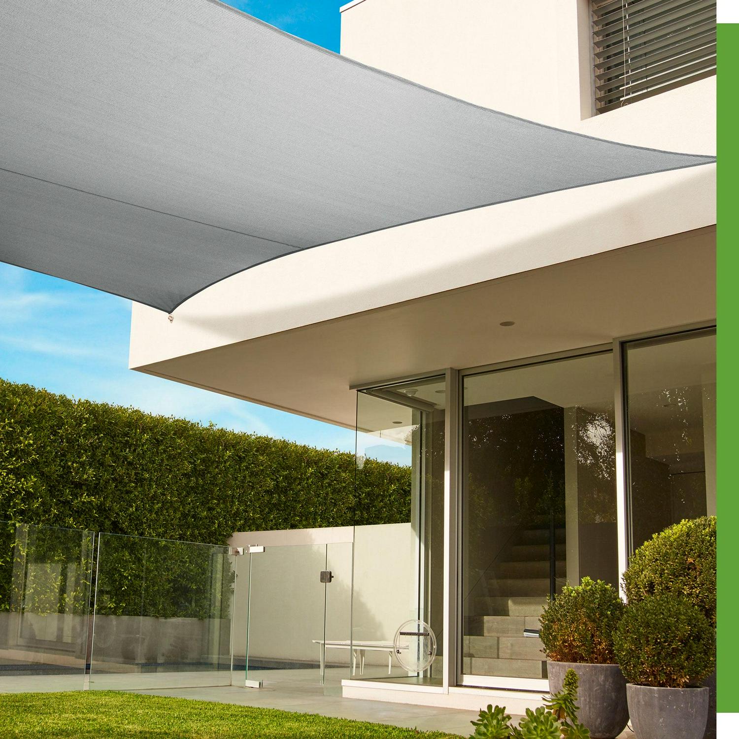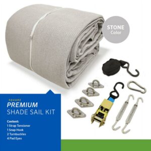 The Coolaroo premium shade sail kit is the ultimate shade solution for unique, permanent installations. Featuring highly durable,this premium shade sail will enhance your residential and commercial spaces while protecting them from the sun’s harmful UV rays. The commercial grade fabric has reinforced edges for increased stability and is breathable to allow warm air to escape through, substantially reducing the temperatures below. Stainless steel installation hardware and detailed instruction manual is included with this kit to ease the installation process of your shade sail. The Coolaroo premium shade sail is providing you with a beautiful, architectural shade solution for years to come.