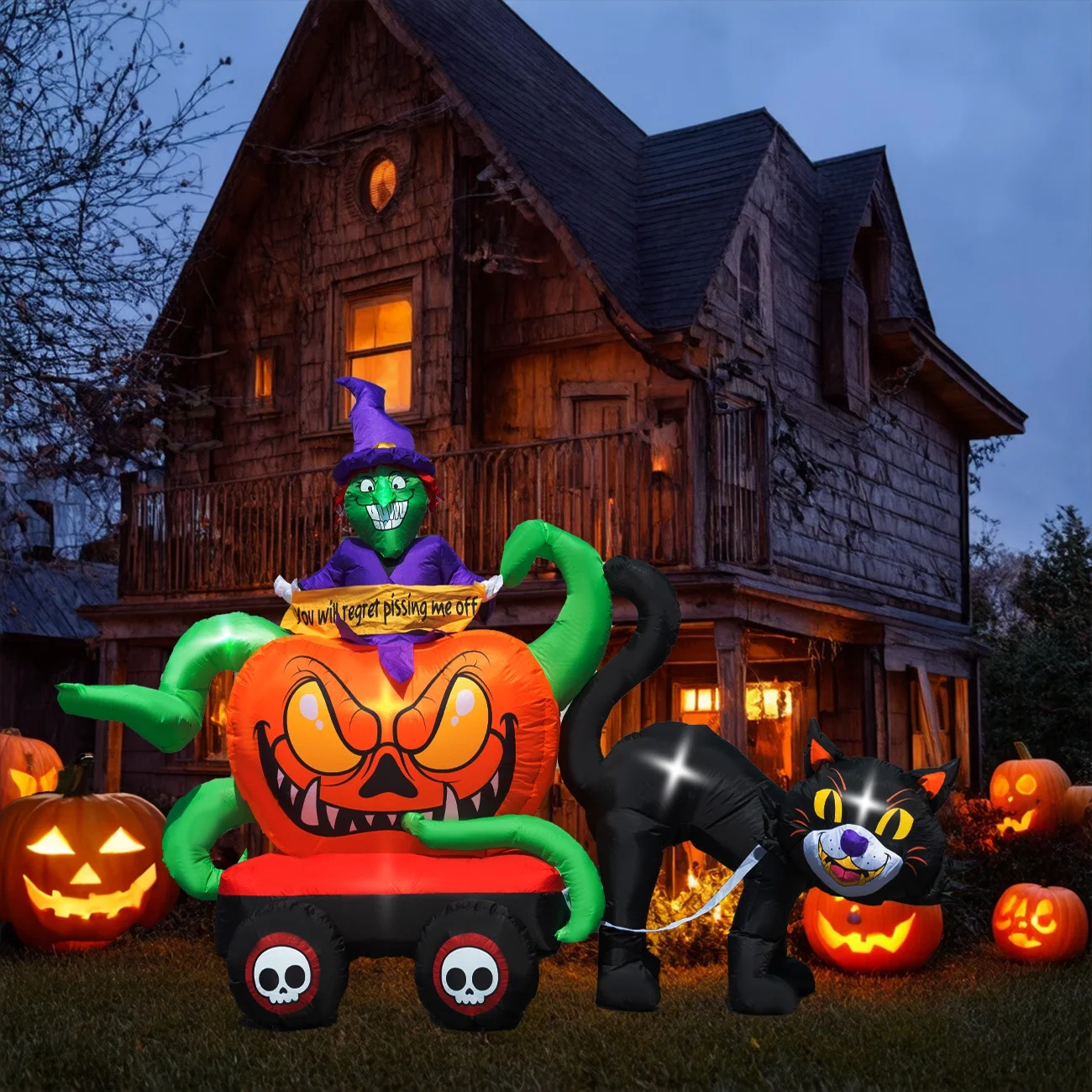 Coolmade Halloween Inflatable Decoration Witch Pumpkin Truck Built-in LED 9ft