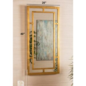 Highlighted by geometric cutouts, even the frame of the Cooper Classics Benedict Wall Mirror becomes part of the mirrored surface. Finished with a delightful golden patina, this mirror brings a sleek modern feel to your decor.