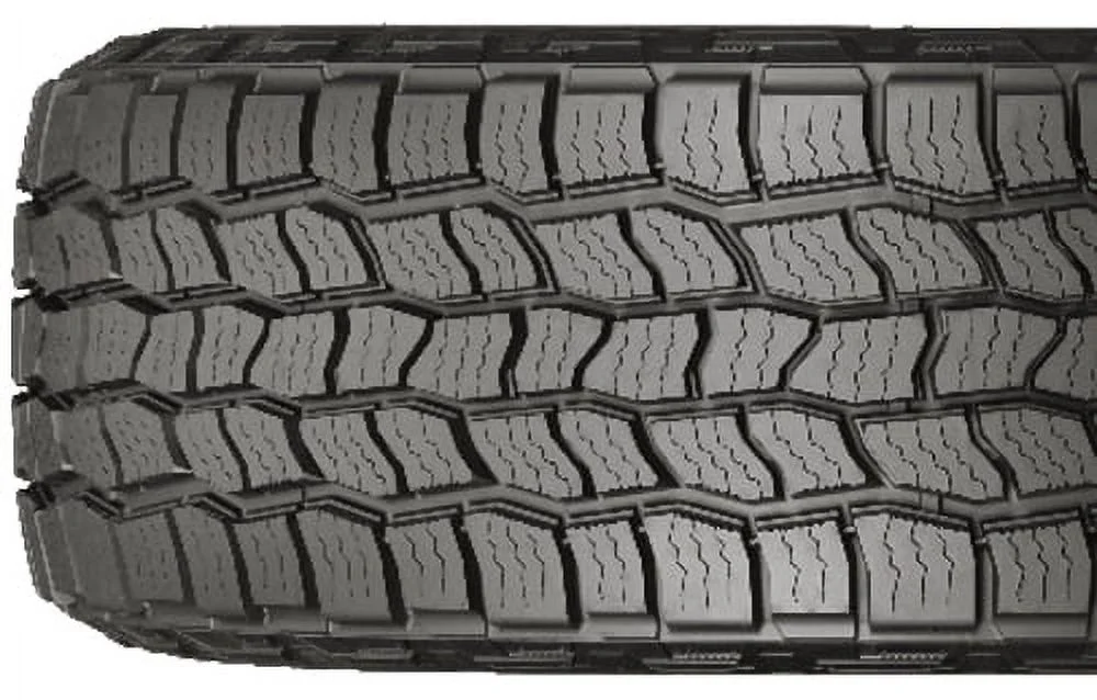 The Discoverer AT3 4S tire from Cooper delivers off-road performance for light trucks and SUVs without giving up ride comfort, low noise, and road manners on the pavement. The Discoverer AT3 4S features a silica-enriched tread formulation with two steel belts, polyester cord plies, and a nylon reinforcement layer. Where the rubber meets the road, you’ll find an open five-rib all-terrain tread pattern with Aqua Vac channels to resist hydroplaning, Micro-Gauge zigzag sipes, and sawtooth block edges for traction in slush and snow. Backed by a 65,000 mile limited manufacturer tread life, the Discoverer AT3 4S is Three Peak Mountain Snowflake certified for use in moderate to severe winter weather conditions.