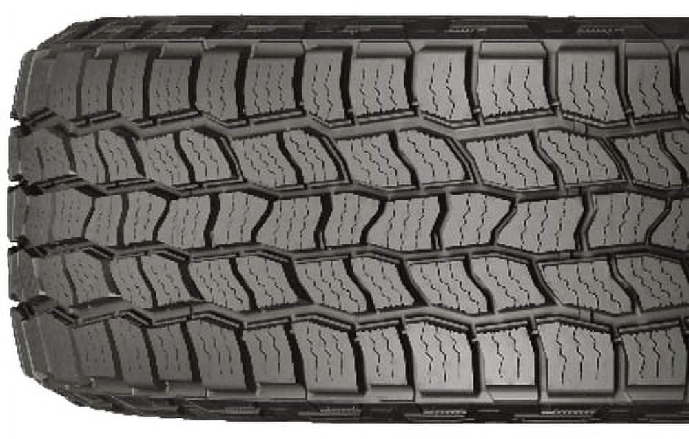 The Discoverer AT3 4S tire from Cooper delivers off-road performance for light trucks and SUVs without giving up ride comfort, low noise, and road manners on the pavement. The Discoverer AT3 4S features a silica-enriched tread formulation with two steel belts, polyester cord plies, and a nylon reinforcement layer. Where the rubber meets the road, you’ll find an open five-rib all-terrain tread pattern with Aqua Vac channels to resist hydroplaning, Micro-Gauge zigzag sipes, and sawtooth block edges for traction in slush and snow. Backed by a 65,000 mile limited manufacturer tread life, the Discoverer AT3 4S is Three Peak Mountain Snowflake certified for use in moderate to severe winter weather conditions.