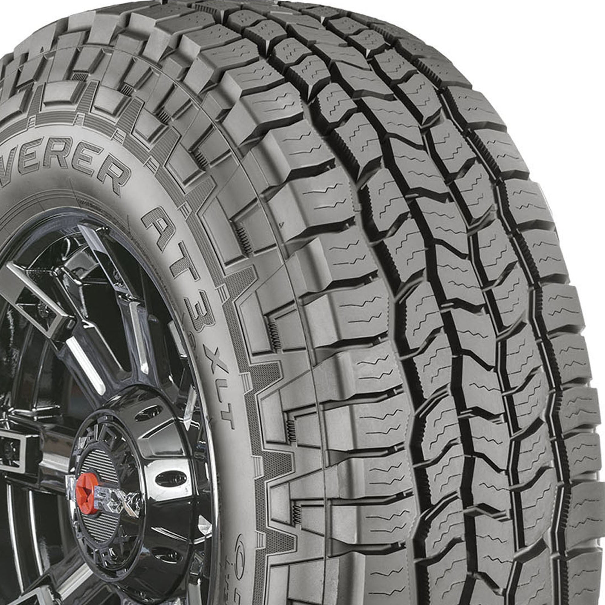 Whether your destination is the jobsite, a fishing spot off the beaten track or the grocery store, the Cooper Discoverer AT3 XLT tire is ready with a durable design, dependable off-road traction, and good road manners and ride on the pavement for your light truck or SUV. The Discoverer AT3 XLT features Cooper’s Durable Tread Technology for enhanced load rating and long wear, while the Secure-Grip all-terrain tread pattern features deep grooves, stone ejectors, and rugged shoulders for great traction in mud, snow, sand, and gravel. The Discoverer AT3 XLT’s Whisper Grooves are a system of sound buffers to reduce road noise and improve ride comfort, and the tire is also backed by a 60,000 mile limited manufacturer tread life for more miles and fun.