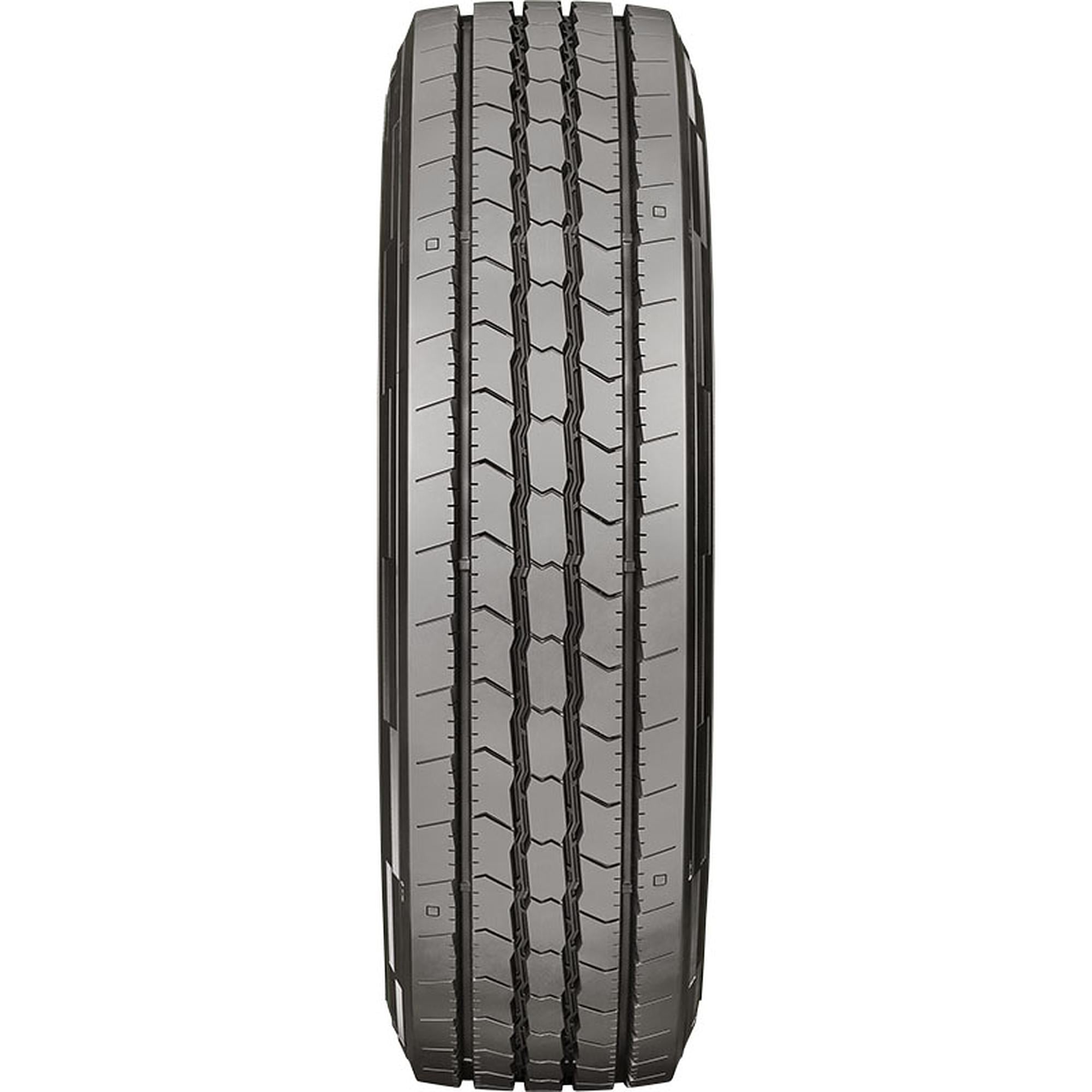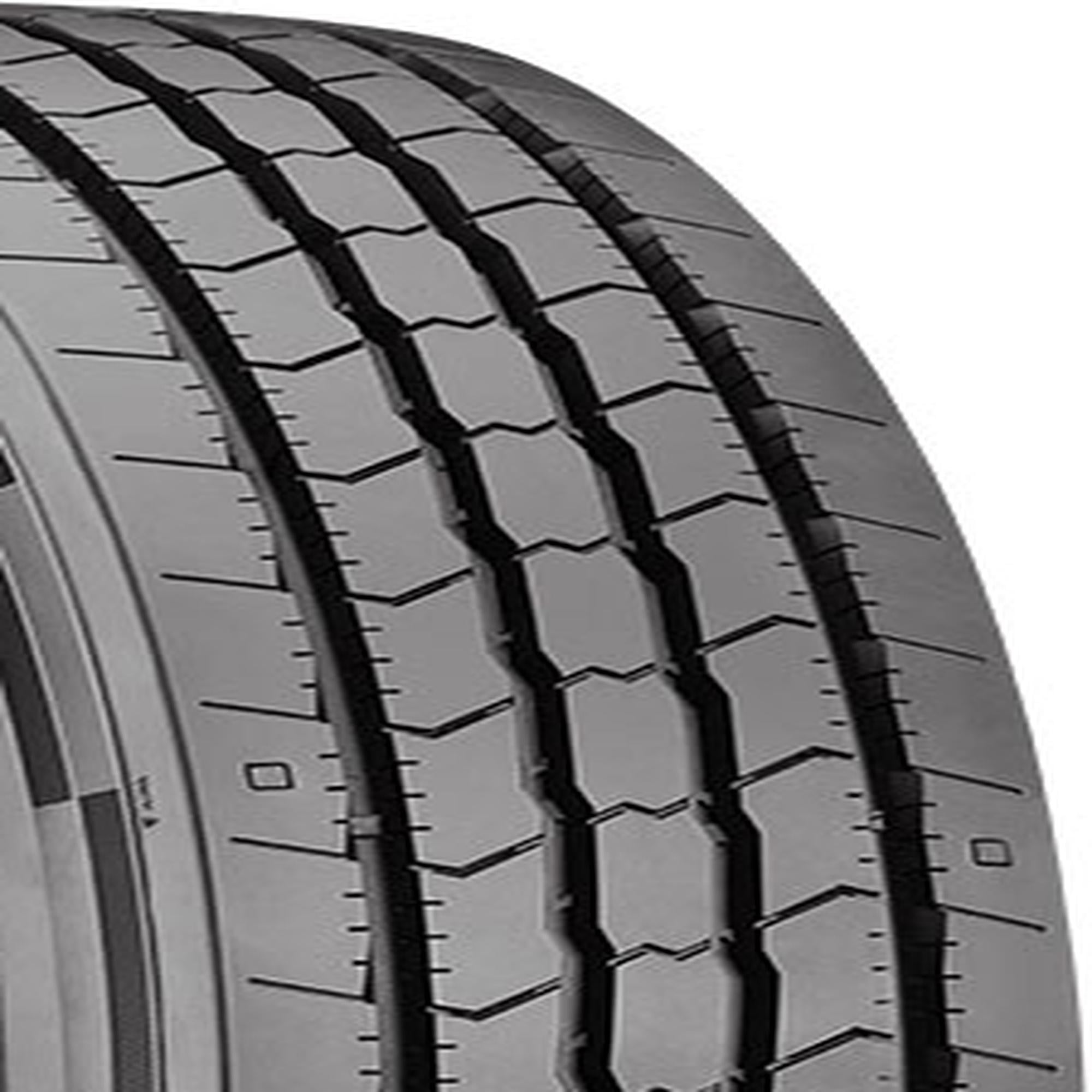 Designed for use on all positions of commercial trucks and buses in regional and pick up and delivery applications Built with a scrub resistant rubber compound Features aisle siping that controls irregular wear Unique stone ejectors in the grooves force rocks, stones, and water out of the tire for consistent traction and to protect the casing from damage Weather Square Visual Wear Indicators allow drivers to visually see how their tires are wearing Three Peak Mountain Snowflake certified Size: 245/70R19.5 Load Range: H Product May Vary From Picture Wheel/Rim Not Included