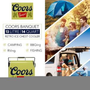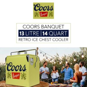 – Show off your cool vintage style: This retro metal ice chest features official vintage Coors Banquet graphics, eye-catching painted exterior, and polished chrome accents, making it the perfect accessory for the beach, patio, campsite, boat, cottage, or RV