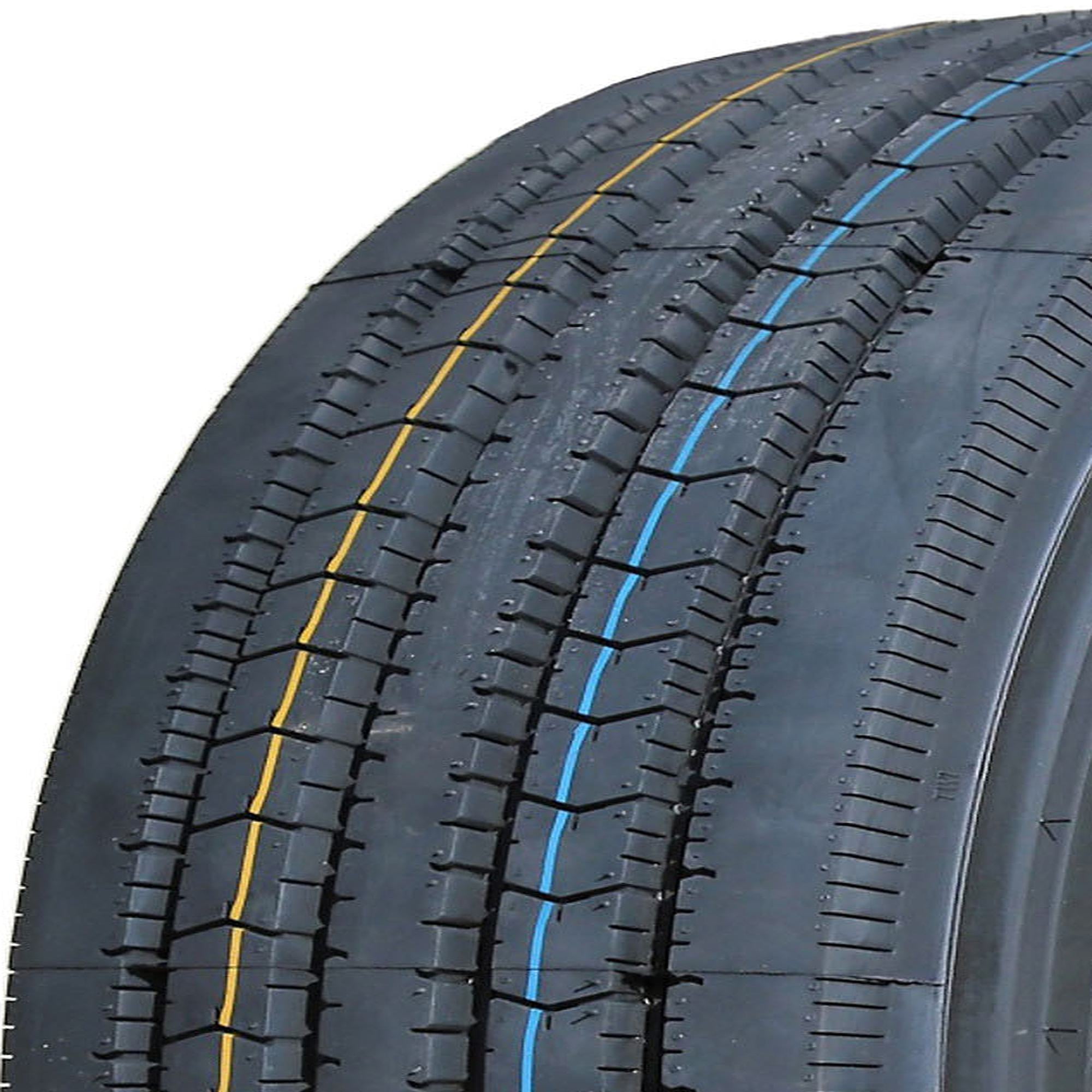 Designed for use on the steer axle of medium- and heavy-duty semi-trucks in on-highway applications Damage-resistant tread compound guards the tire against cuts, chips, and abrasions Circumferential grooves evacuate water to resist hydroplaning Steel belted radial design increases durability High ply rated for a higher load carrying capacity and extra strength Size: 215/75R17.5 Load Range: H Product May Vary From Picture Wheel/Rim Not Included