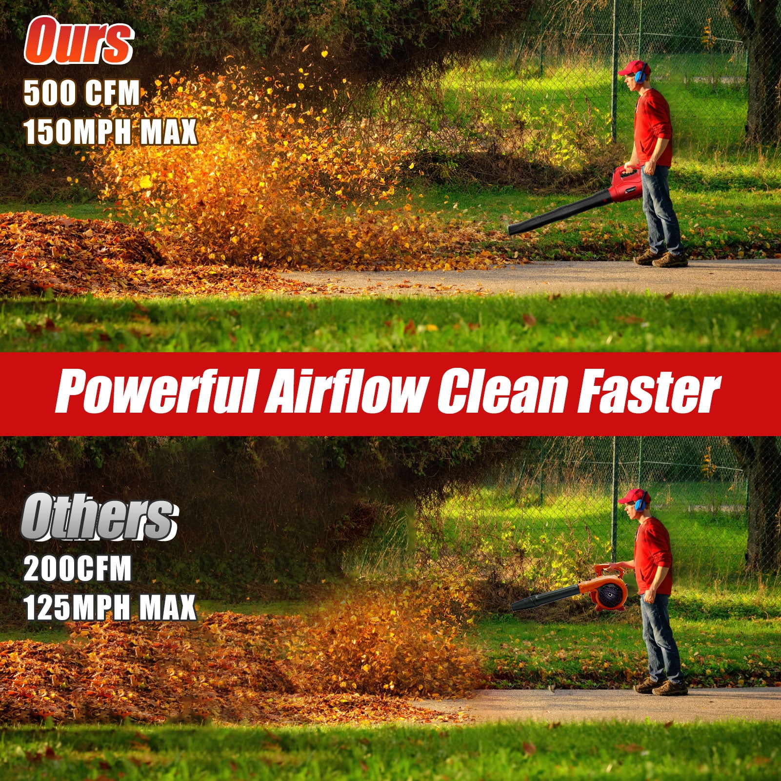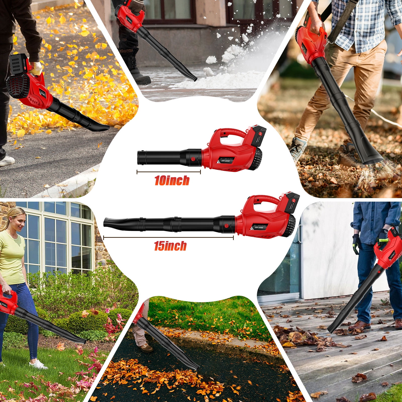 ✅【Upgrade Battery and Fast Charger】Upgraded leaf blower with 6000mAh 5c Battery and Fast Charger- blower comes with powerful copper motor and turbine tech, to achieve 4 major standards-Fast charging, long life, low energy consumption, high wind power.The battery interface is compatible with Makita batteries, such as BL1850B, BL2040B, BL2130B, BL1820B, etc ✅【Equipped with Back Strap and Cordless Design】 Our leaf blower is easy to carry, compact and we have equipped it with a special back strap to better relieve the work in. It is very convenient in use and storage. Plus, with the cordless design, you can take it anywhere you want to go. It will be a great helper for your outdoor and indoor cleaning activities. Our leaf blower has a narrow nozzle for precise work such as cleaning fences, corners and other small spaces of sticky fall leaves. ✅【Lightweight and Portable】Leaf blower is made of flexible rubber material, which is non-slip and comfortable; the lightweight design is specially improved to make it suitable for one-handed operation. The ergonomic body is adopted to form naturally along the blowing direction, reducing users by 40% The state of fatigue not only provides you with an anti-slip effect during work but also supports the effect of making your work easier. ✅【Easy Installation】We always focused on making tools easy and quick to use. This leaf blower is equipped with 2 detachable air ducts and has 2 different air outlet shapes-narrow air outlet and a wide air outlet. You can choose to assemble all 2 tubes or only one or two-stage adjustable tubes to ensure that you can switch at any time in different environments. This cordless blower can be assembled in 1 minute; the best gift for friends and family Thanksgiving gifts and Christmas gifts. ✅【6 Adjustable Speeds】This battery-powered leaf blower provides you with 6 levels of adjustable speed; The high-speed mode has an average no-load speed of 180mph, and the low-speed mode has an average no-load speed of 70mph. leaf blower battery powered, suitable for all usage scenarios. could help you easily convert from indoor work to outdoor work; With adjustable blowing tubes, people of all heights would find out a comfortable using experience. 💎Technical Specifications: Rated voltage: 21V Air volume: 180MPH, 320CFM Weight: 5.95 lbs Tube Diameter: 4 inch Switch: 6 Adjustable Speeds Noise range: 10-50 dB Speed: 0-20000r/min Battery Capacity: 6000mAh Working Time: 45-60mins Size: 38.1 * 7.7 * 15.3 inches 👇What’s in the Box? 2×Tubes 1×Leaf Blower 1×Shoulder Strap 1×6000mAh Battery 1×Battery Charger 1×User Manual 1×Earplug 🙋♀️ Question: Is there any difference between 180MPH and 85MPH? 🤞 Answer: MPH (Miles Per Hour), 180MPH is about twice the wind speed of 85MPH, suitable for blowing larger and heavier fallen leaves, etc.
