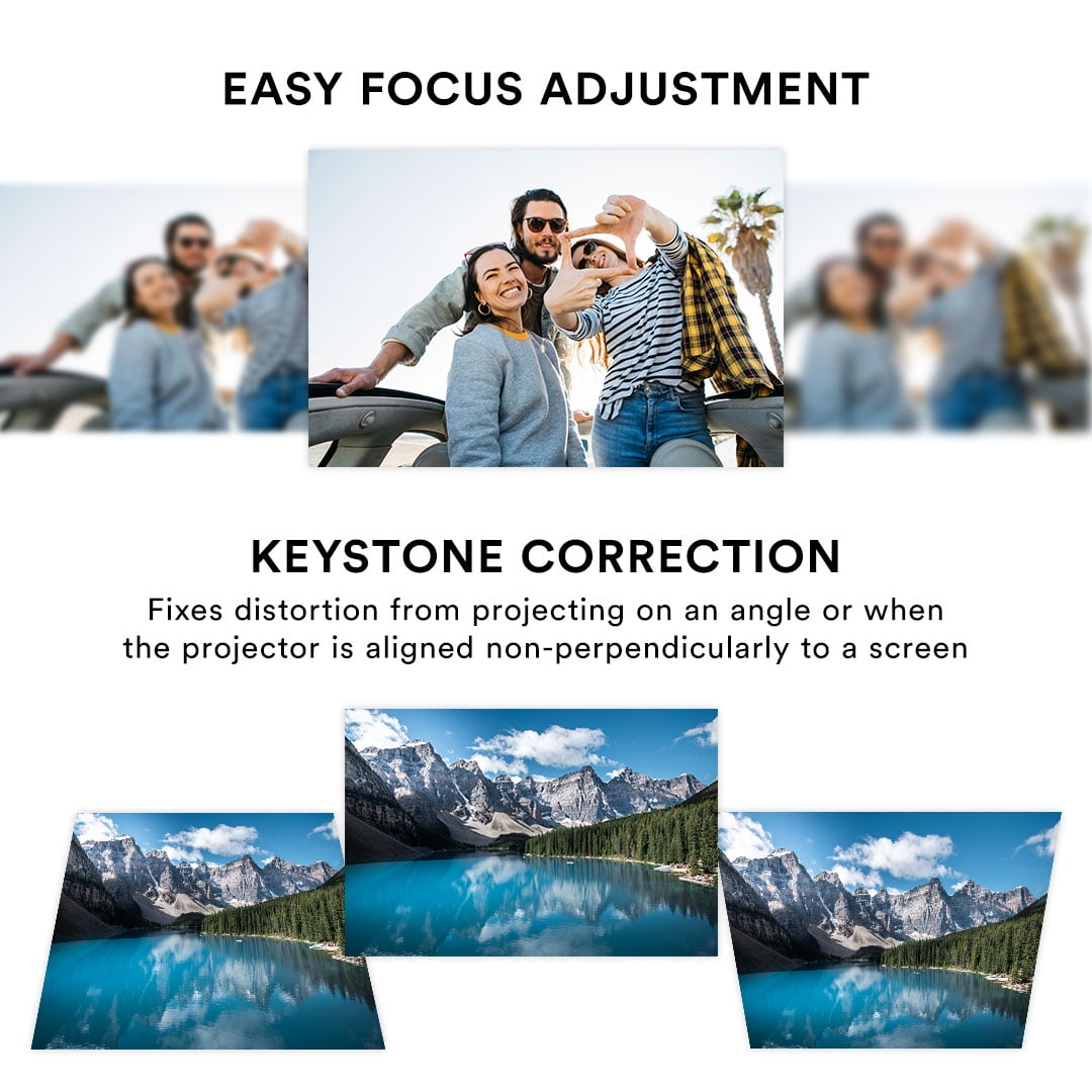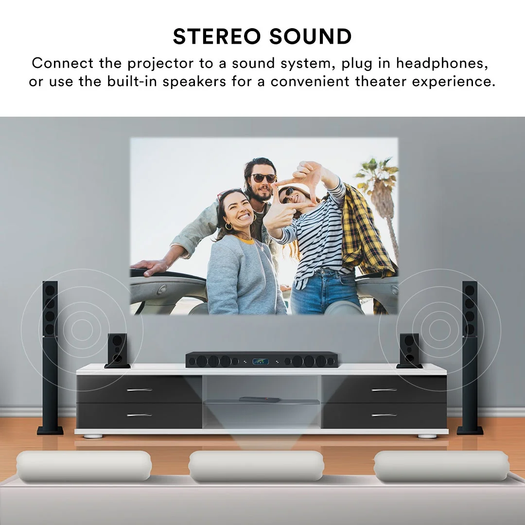 Bring your entertainment source on the go with the Core Innovations HD Portable LCD Home Theater Projector (CJR720BLHD). The 8400mAh rechargeable battery offers up to 120 minutes of playback time, so you can stream videos, view photos and play your favorite games without connecting to a power source. View content in up to 1080p, and link your preferred device to this projector via numerous versatile connections. Use the two HDMI inputs to easily connect gaming and streaming devices, computers and more; plug in a USB drive or Micro SD card; or connect Blu-Ray players and gaming consoles via AV. CJR720BLHD even supports smartphone mirroring – simply add an HDMI adapter (sold separately) to your HDMI connection, and project videos and photos from your phone onto the big screen. With an adjustable screen size between 27”-150” and two built-in stereo speakers, this projector is perfect for solo gaming marathons or an immersive movie night experience with the entire family. Your living room and backyard setups just got savvier.
