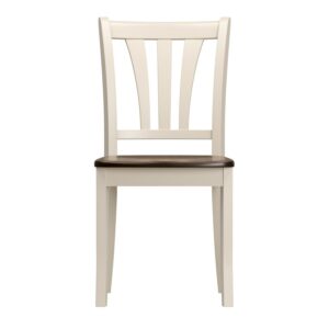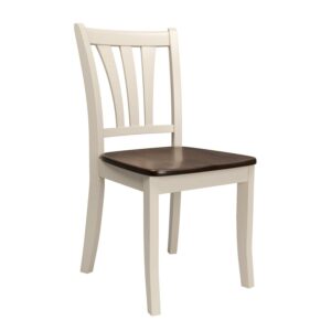CorLiving Dillon Dark Brown and Cream Solid Wood Dining Chairs with Curved Vertical Slat Design, Set of 2