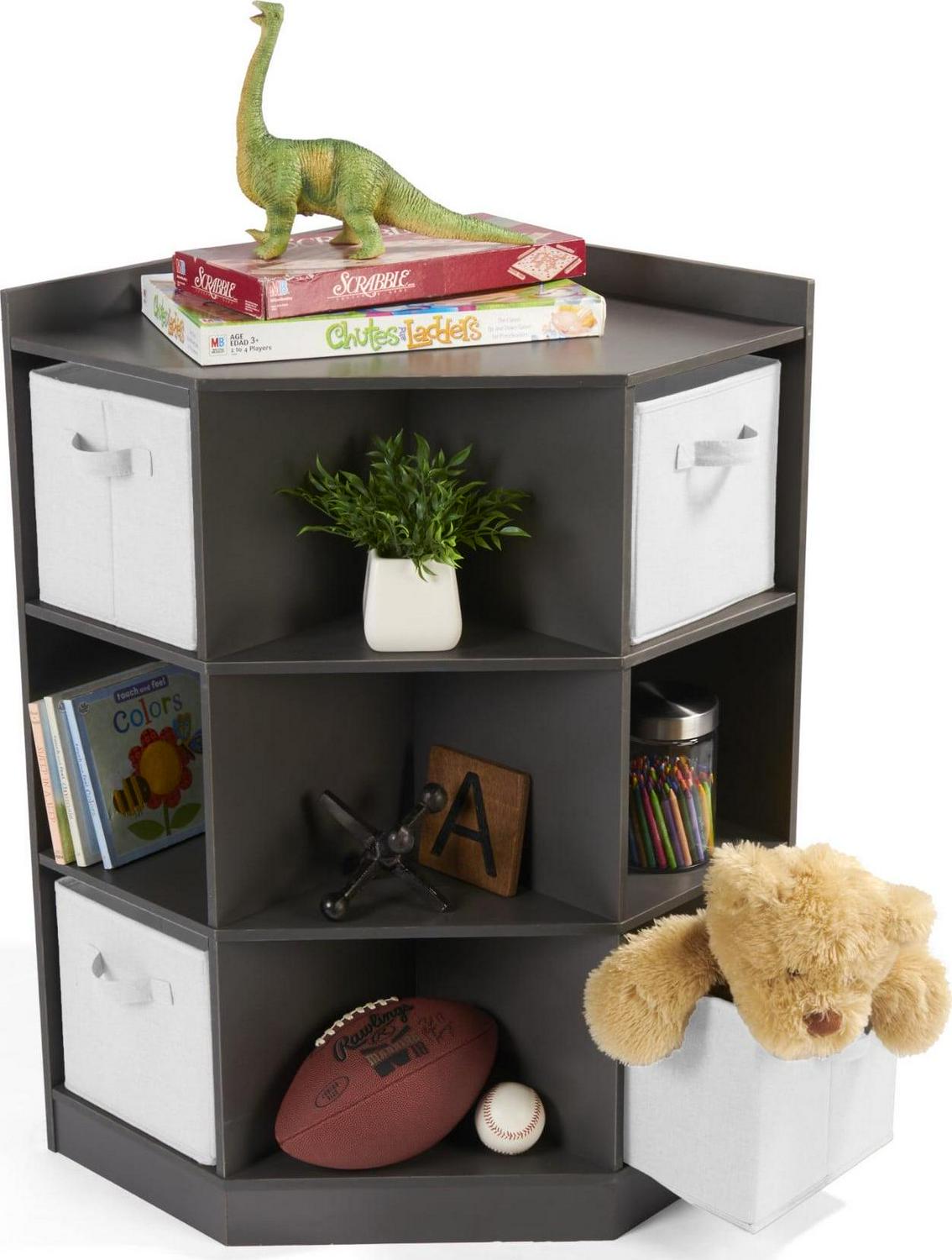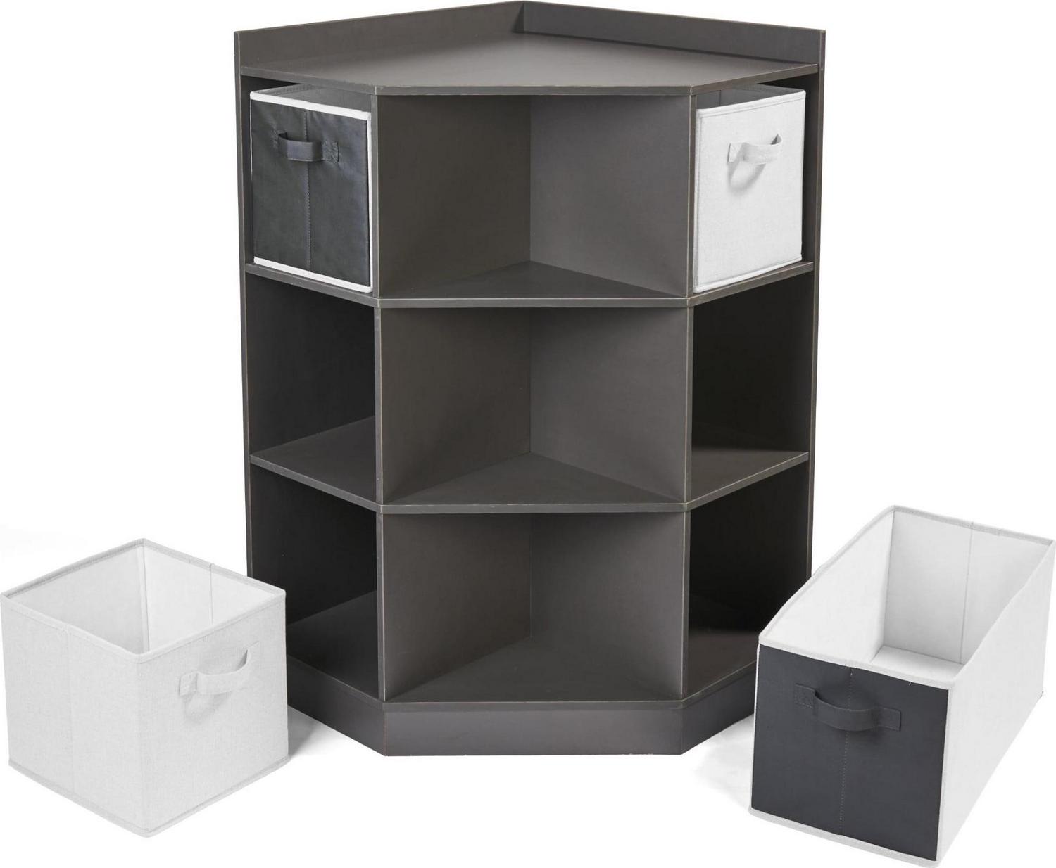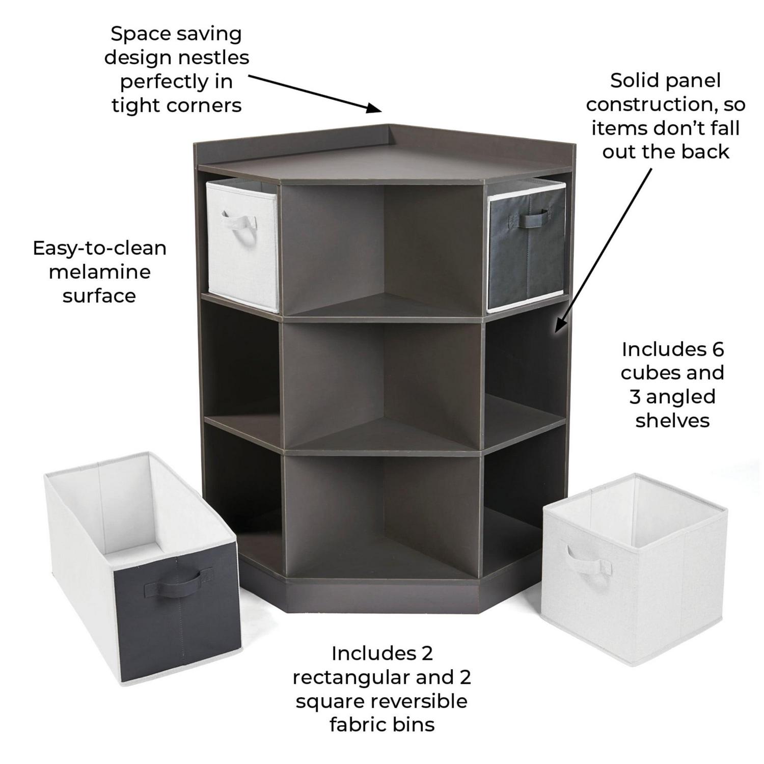Corner Cubby Storage Unit with Four Reversible Baskets – Charcoal