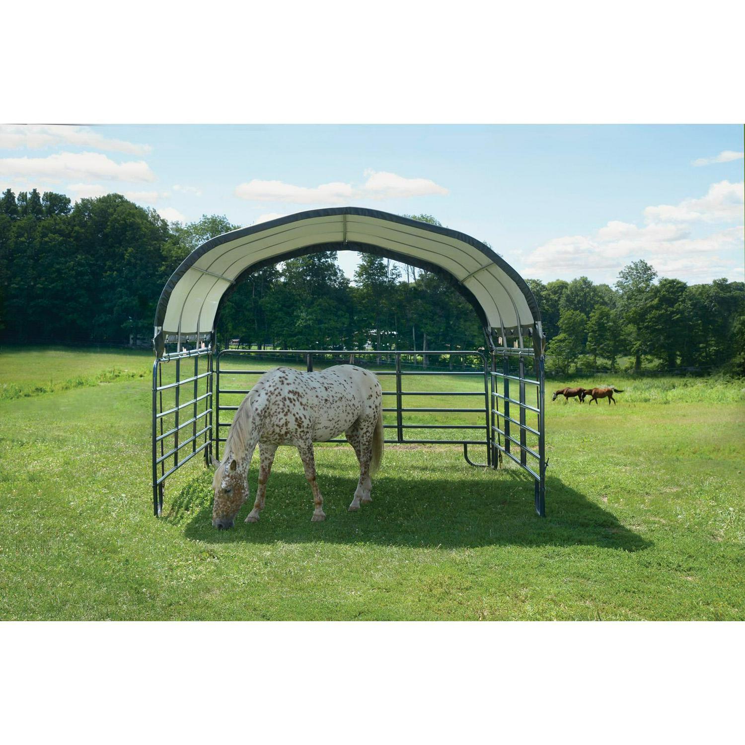 Corral Shelter, Green Cover, Steel Frame, Water Resistant, Panels Not Included, 12 x 12 Ft.