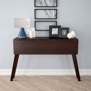– Supports a 200 lb. weight capacity rating. Open dimensions are 47.6″ W x 29.9″ D x 29.3″ H. Closed leaf console table surface is 47.6″ W x 11.8″ D. With one leaf up, table surface is 47.6″ W x 20.8″ D