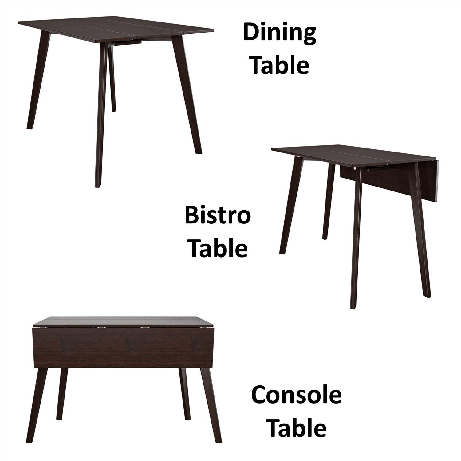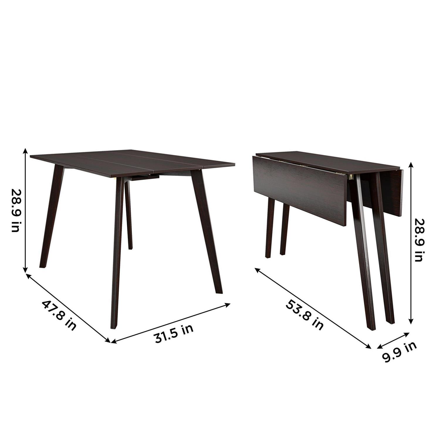 - Wood Table has 2 folding drop-leaf sides that can be configured in 3 different folding positions