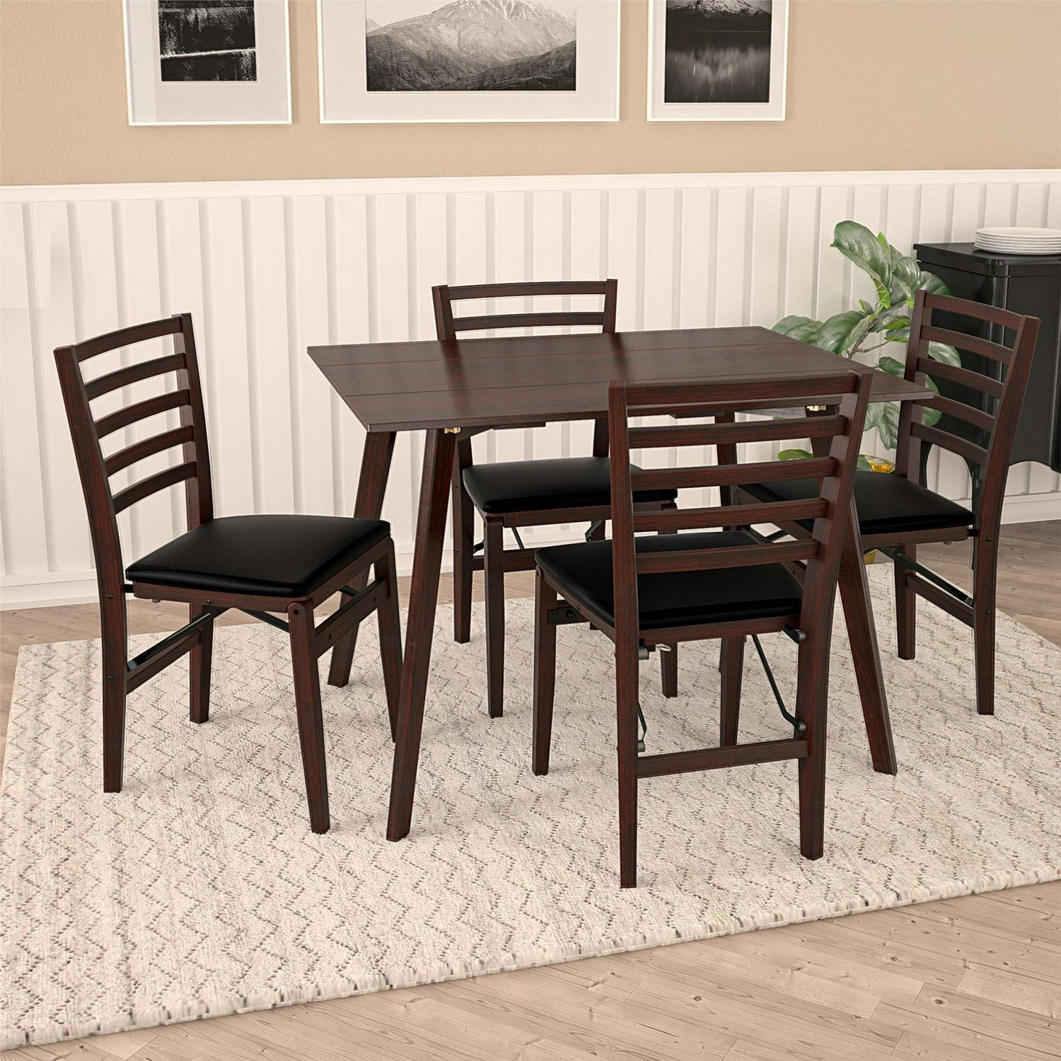 COSCO has been a trusted solution for folding chairs and tables for over 80 years. The multi-functional wood table is ideal for hosting dinner parties with friends or quiet home-cooked meals with family. The legs fold in and one, or both, of the table leaves fold down to create extra space in your room or hallway. This stylish and sleek product is available in a contemporary dark mahogany color that complements and refreshes home dining décor. The multi-functionality and space-saving design make the table ideal for smaller rooms or apartment living. The table is designed with a durable solid wood frame & MDF veneer tabletop, allowing it to support a 200 lb. weight capacity rating.