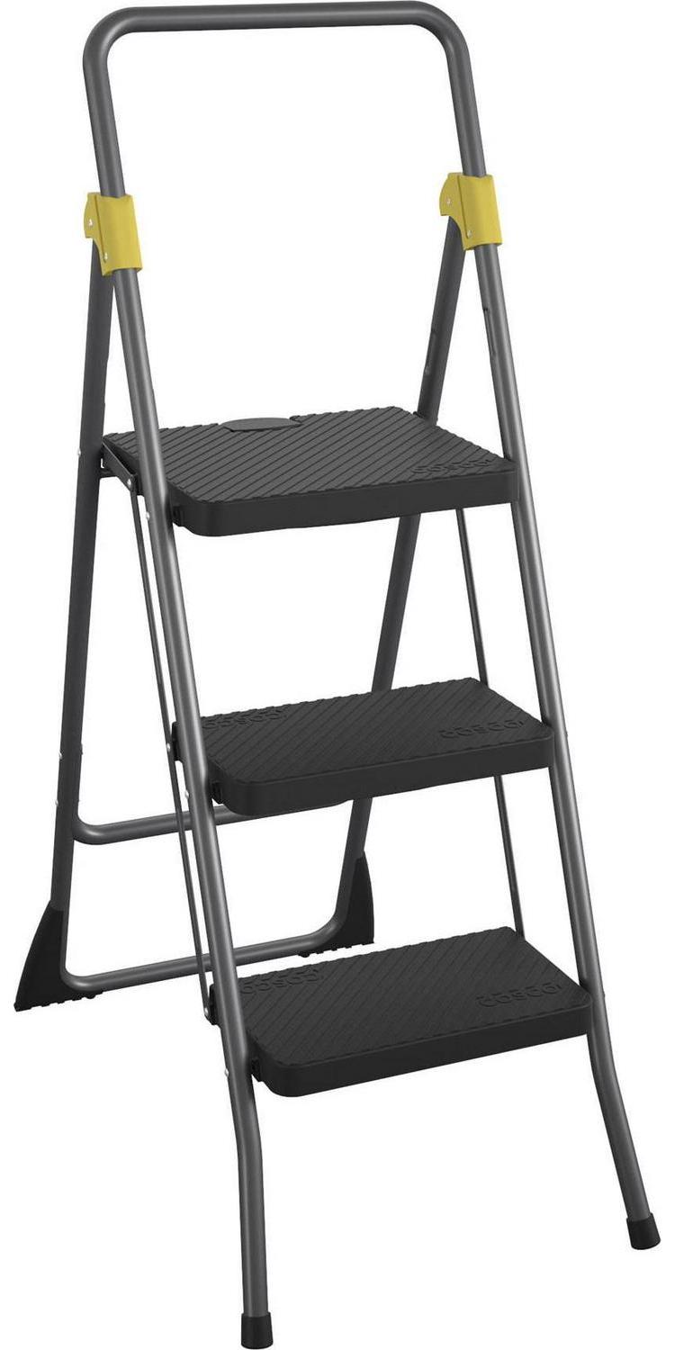 Cosco Commercial 3-Step Folding Stool, 300-lb Cap, 20-1/2″W x 32-5/8″D x 52-1/8″H, Gray: