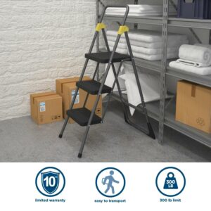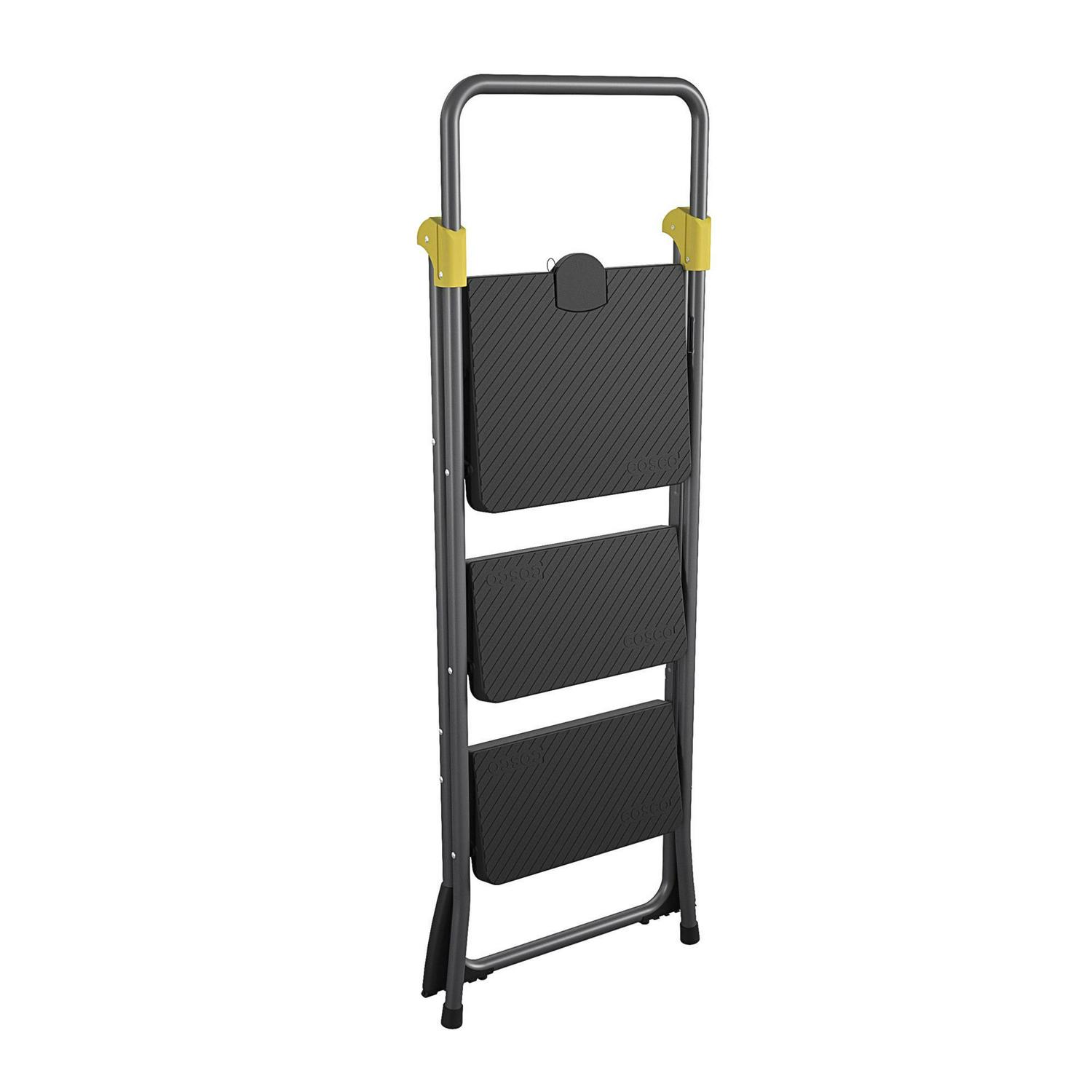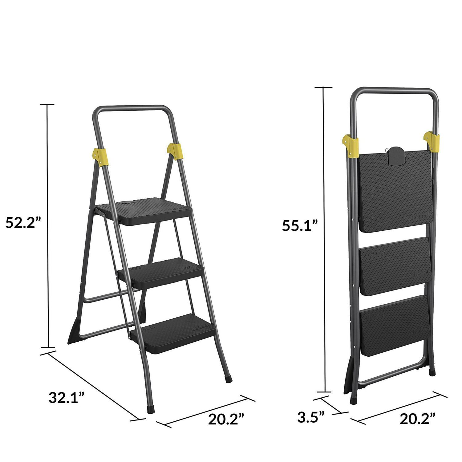 – 3-step folding ladder has a large 14-1/2″W x 12-1/4″D top platform step