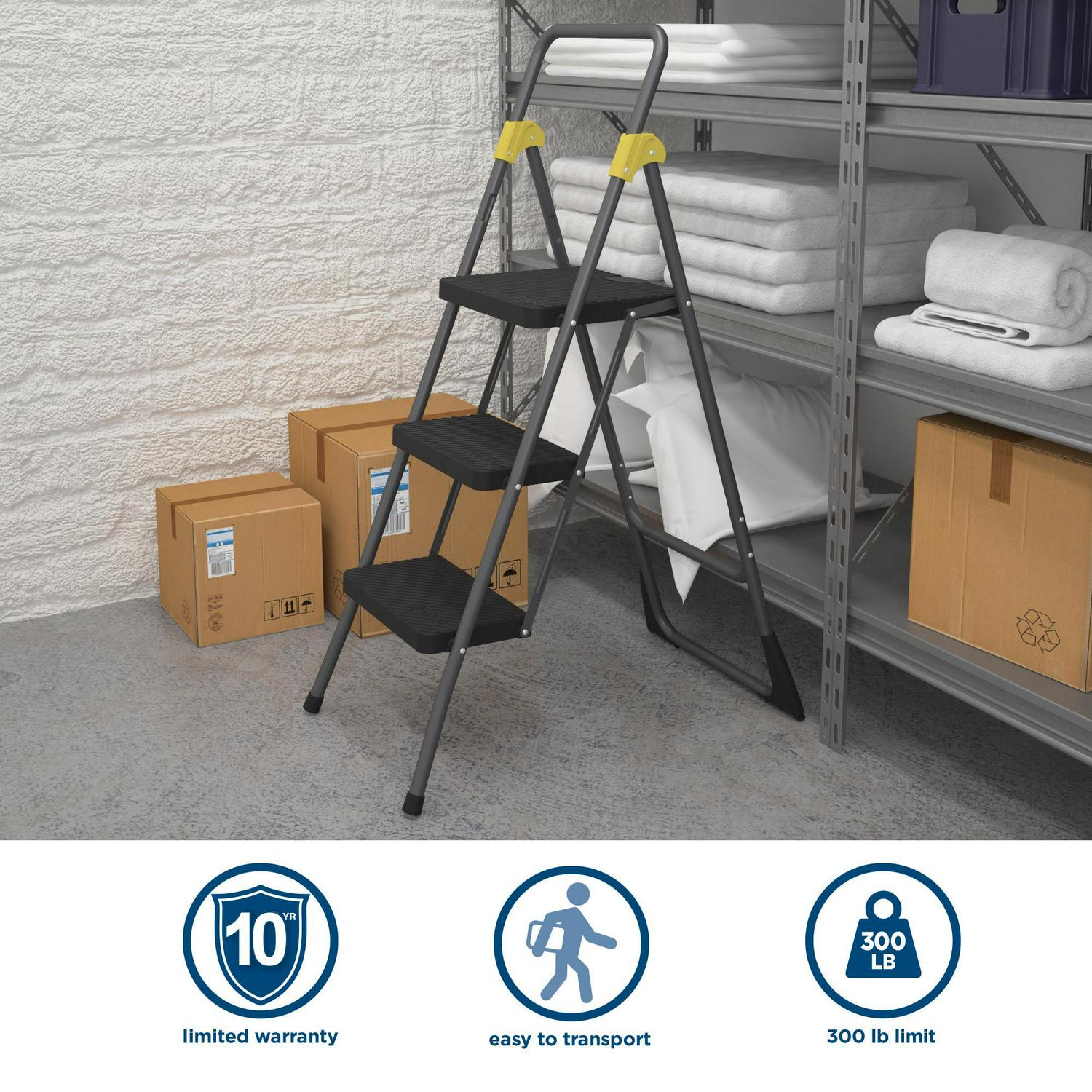 COSCO Commercial 3-Step Folding Stool, 300 lb Cap, Gray
