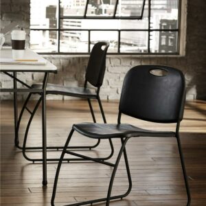 Sit down and enjoy the conference in COSCO Commercial’s contoured back resin stacking chair. Perfect for any office or conference environment, this chair will not only make your atmosphere more enjoyable but adds a simplistic sophistication to any area! Constructed of 16-gauge tubular steel, this product guarantees to be a long-term investment which can be used continuously without fail. The combination of steel and resin includes a weight capacity of 300 pounds, making it an essential necessity for any event! Non-marring foot glides protect all floor surfaces without slipping when in use and polypropylene bumpers protecting the chair when stacked make this chair the best choice – their flawless finish will last under all circumstances. These chairs make maintenance effortless with the resin surface while stacking on top of each other without fail to guarantee easy storage. The shape of the countered seat and back will make you want to sit back, relax, and enjoy that meeting, training, or conference in long lasting comfort.